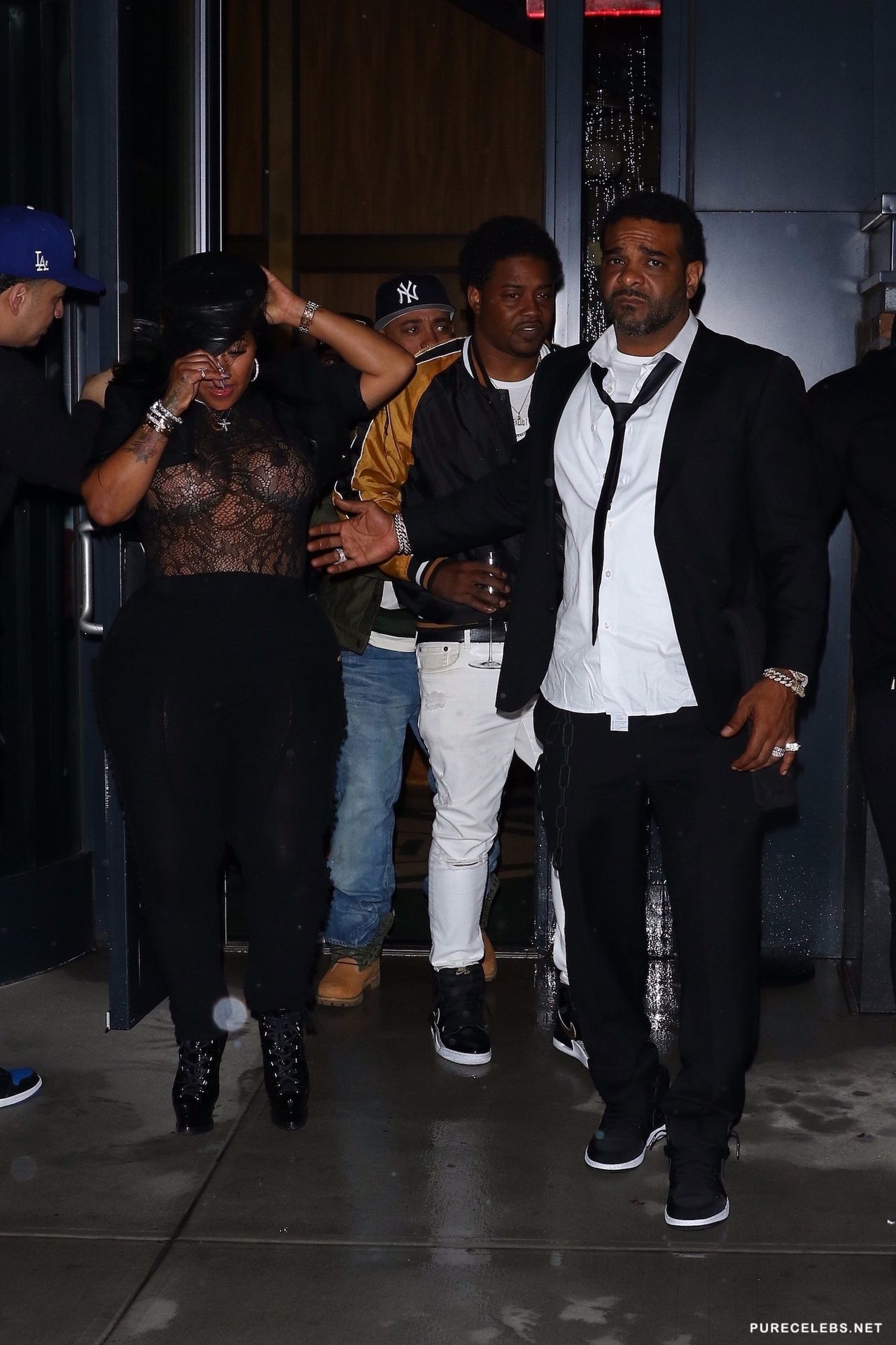 Not so long ago, Chrissy Lampkin attended an event where she spotted her huge melons. A celebrity chose a provocative black outfit that beautifully emphasized the curves of her amazing figure. Black tight pants show off her peachy posterior. Also, the star wore a translucent lace top through which you can clearly see her gorgeous boobs with big hard nipples. And the black cap she wore added more sexuality to her.