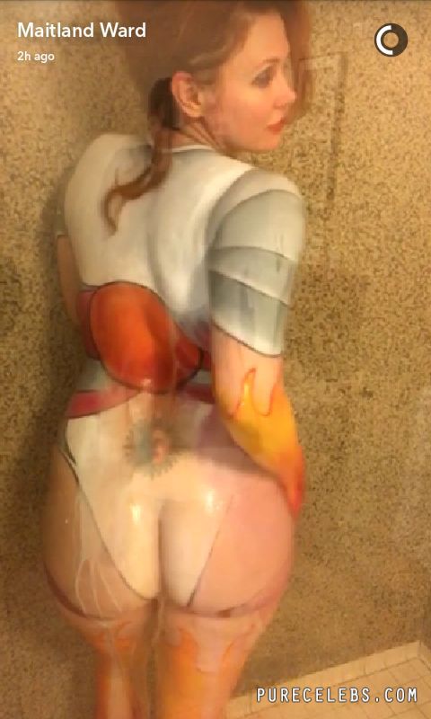 It seems like redhead actress Maitland Ward just can’t get enough attention, but we can’t blame her because her big tits and ass are absolutely stunning. This time we get to see this celebrity babe nude and in a body painting session. After posing for photos of the finished work, she hops into the shower, and gives us another eyeful of her pussy and boobs in this video and photo gallery.