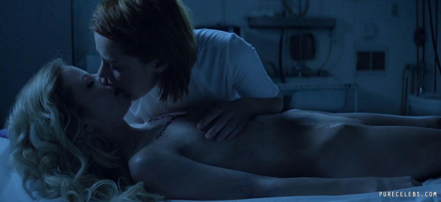From a movie “The Neon Demon” Jena Malone is one freaky girl and she starts kissing Bella Heathcote while she is lying dead on a table. Jena leans in and starts kissing Bella and playing with her small breasts and you as a viewer you can take a glimpse of Bella’s shaved pussy and tight pussy lips. There are some other scenes from the movie you will most likely enjoy.