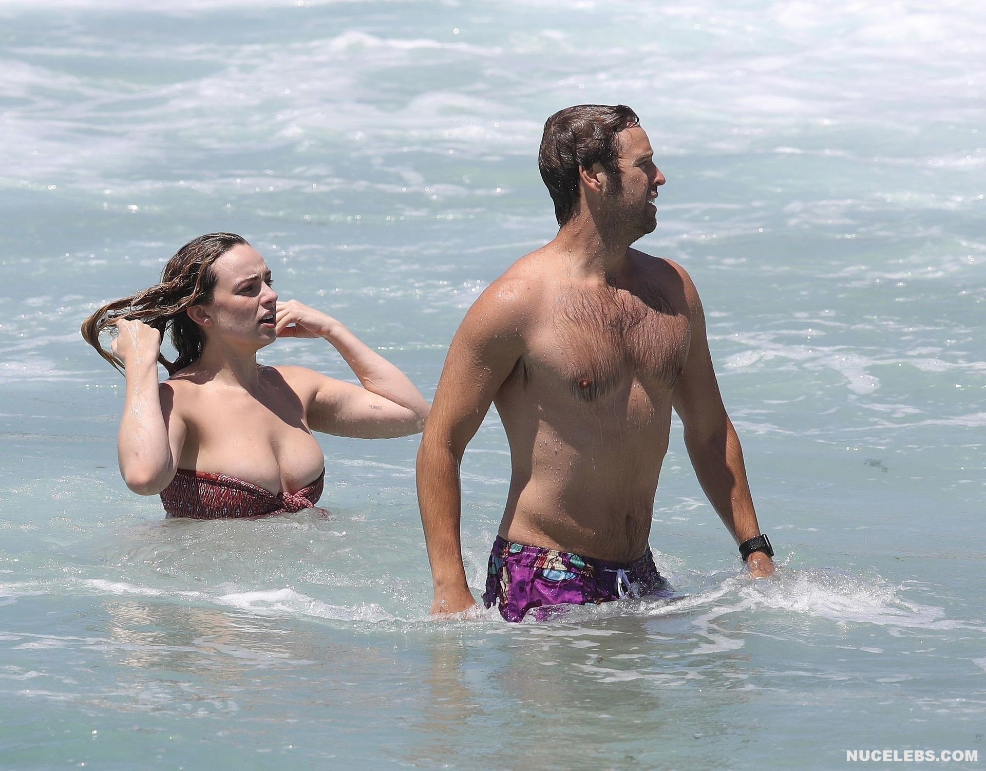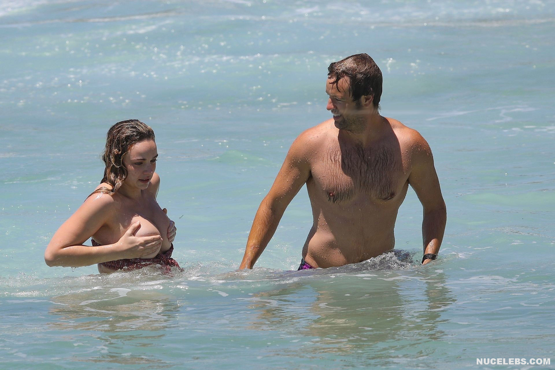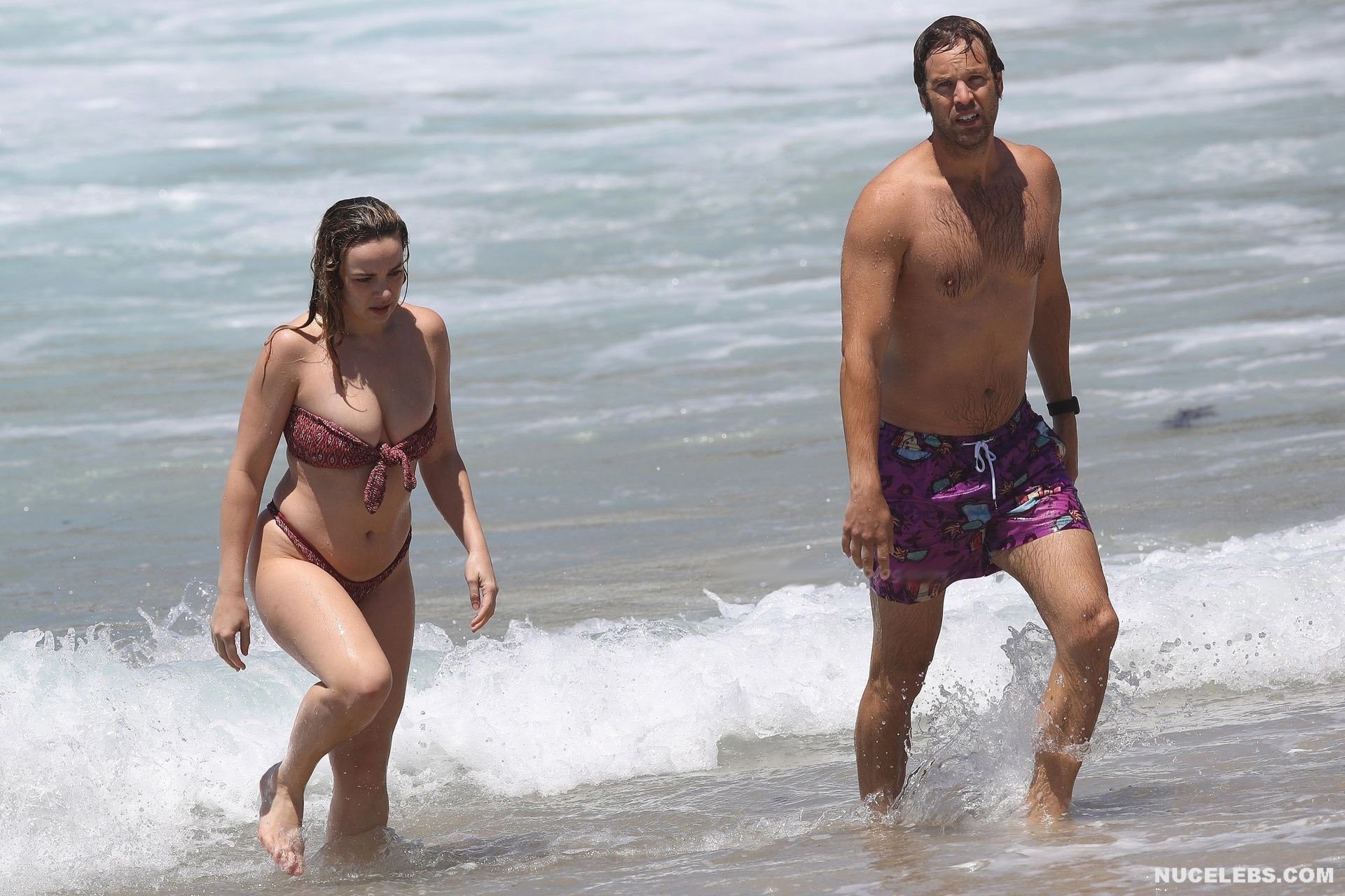 The Bachelor’s Abbie Chatfield was having a great time on the beach where she was caught by the paparazzi. At that time, the girl decided to emphasize her awesome curves and wore a burgundy bikini with a print. Mmmmm, her plump ass in petite panties looked very tempting as she stepped into the water. But the cherry on top was waiting for everyone ahead. After all, Abbie Chatfield’s petite bra could not resist and slipped off her huge nude boobs. And while the girl was correcting him, the paparazzi managed to take a whole series of pictures of Abbie Chatfield’s nude breasts!