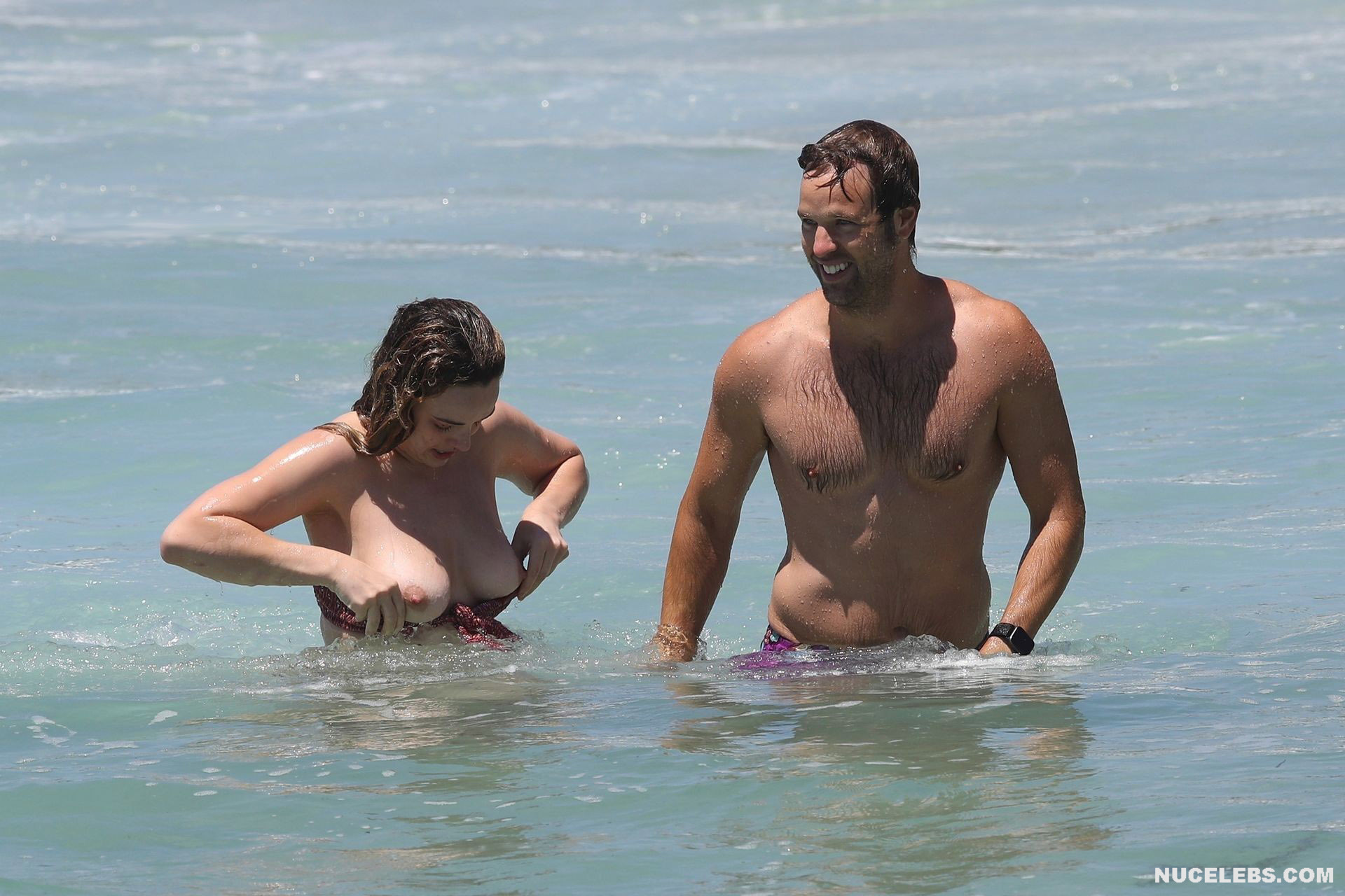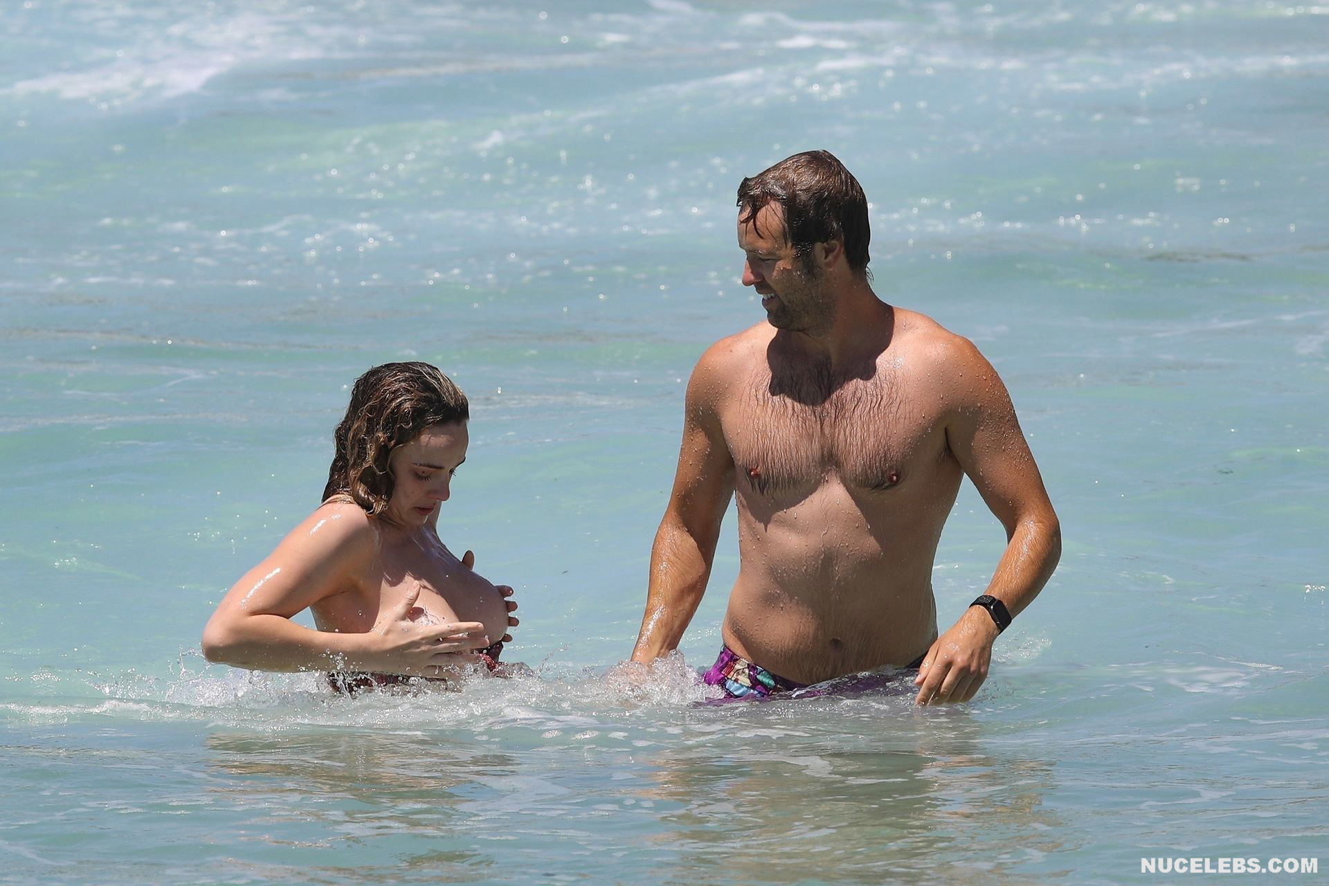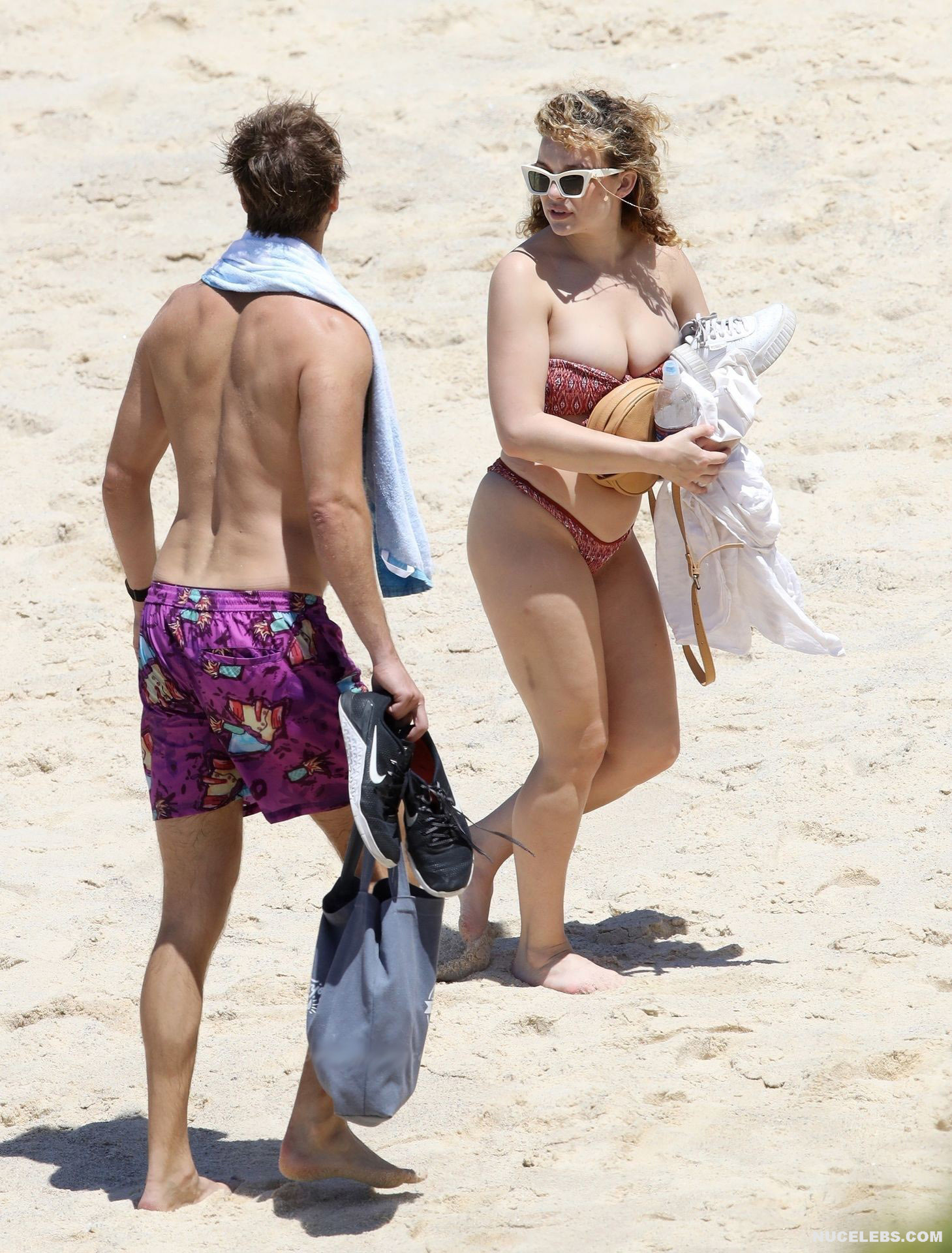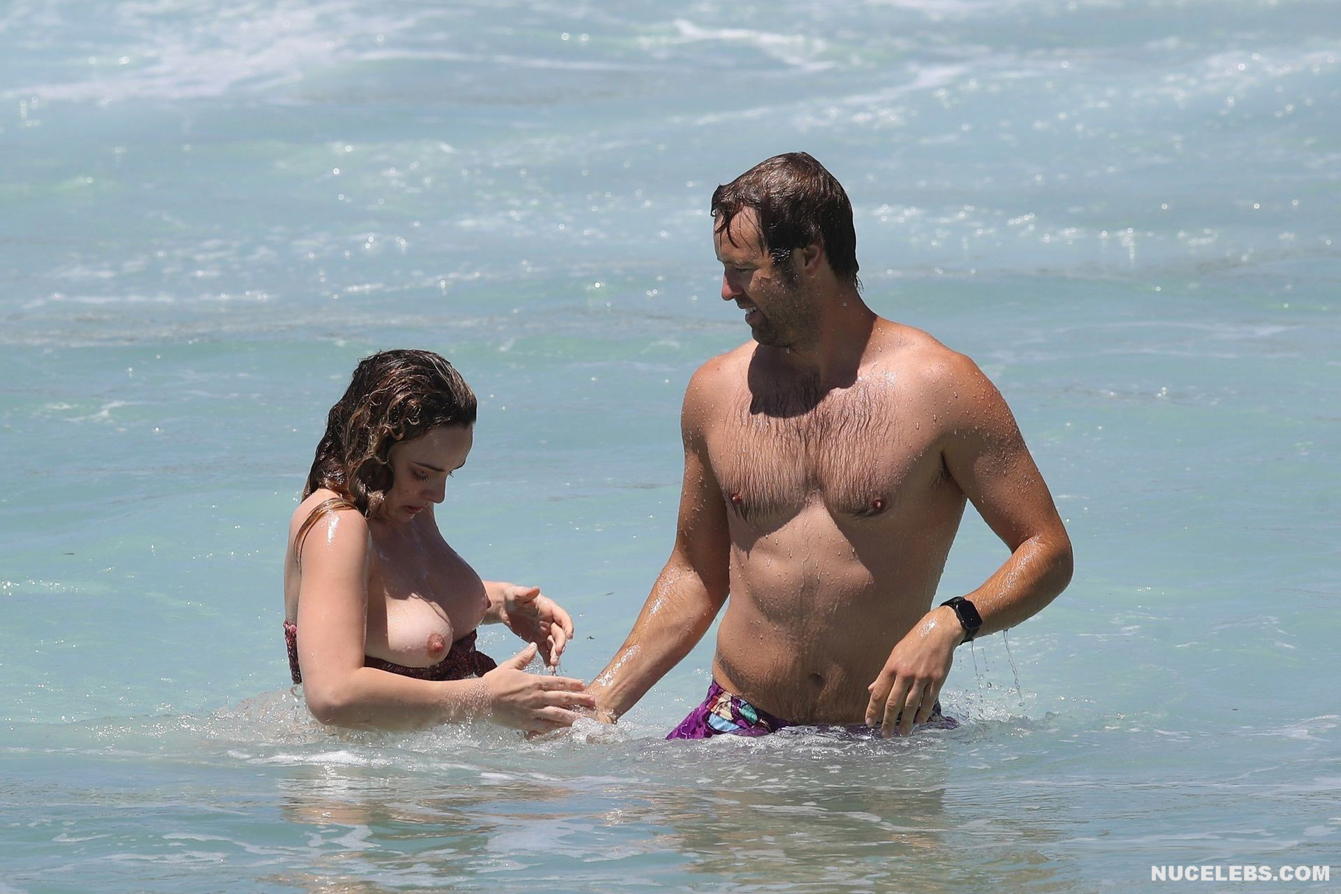 The Bachelor’s Abbie Chatfield was having a great time on the beach where she was caught by the paparazzi. At that time, the girl decided to emphasize her awesome curves and wore a burgundy bikini with a print. Mmmmm, her plump ass in petite panties looked very tempting as she stepped into the water. But the cherry on top was waiting for everyone ahead. After all, Abbie Chatfield’s petite bra could not resist and slipped off her huge nude boobs. And while the girl was correcting him, the paparazzi managed to take a whole series of pictures of Abbie Chatfield’s nude breasts!