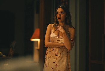 Aimee Lou Wood nude gave a stunning performance in The White Lotus. You will watch with bated breath as this beauty ended up in the same room with an old man. Her slender figure looked so tempting in a silky tight nightgown. So, the man couldn’t wait to rip it off. Aimee Lou Wood nude boobies immediately appeared in front of his face and he began to kiss her small hard nipples…