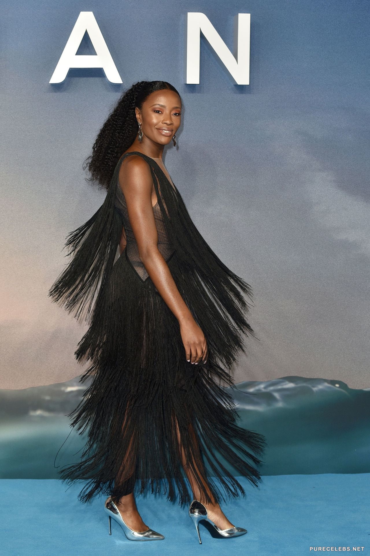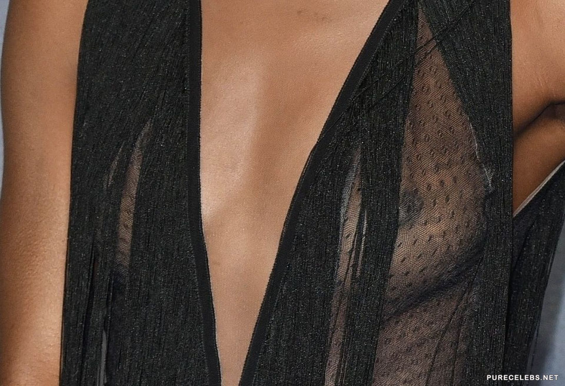 Amazing British TV personality, AJ Odudu looks stunning in a see through, black dress with an extremely deep cleavage. Her smile is just mind blowing and the posture she has while passing by a group of photographers is impressive. What we like about this black beauty is that she decided to spice it all up by leaving a bra at home, so everyone could see her tits and enjoy it.