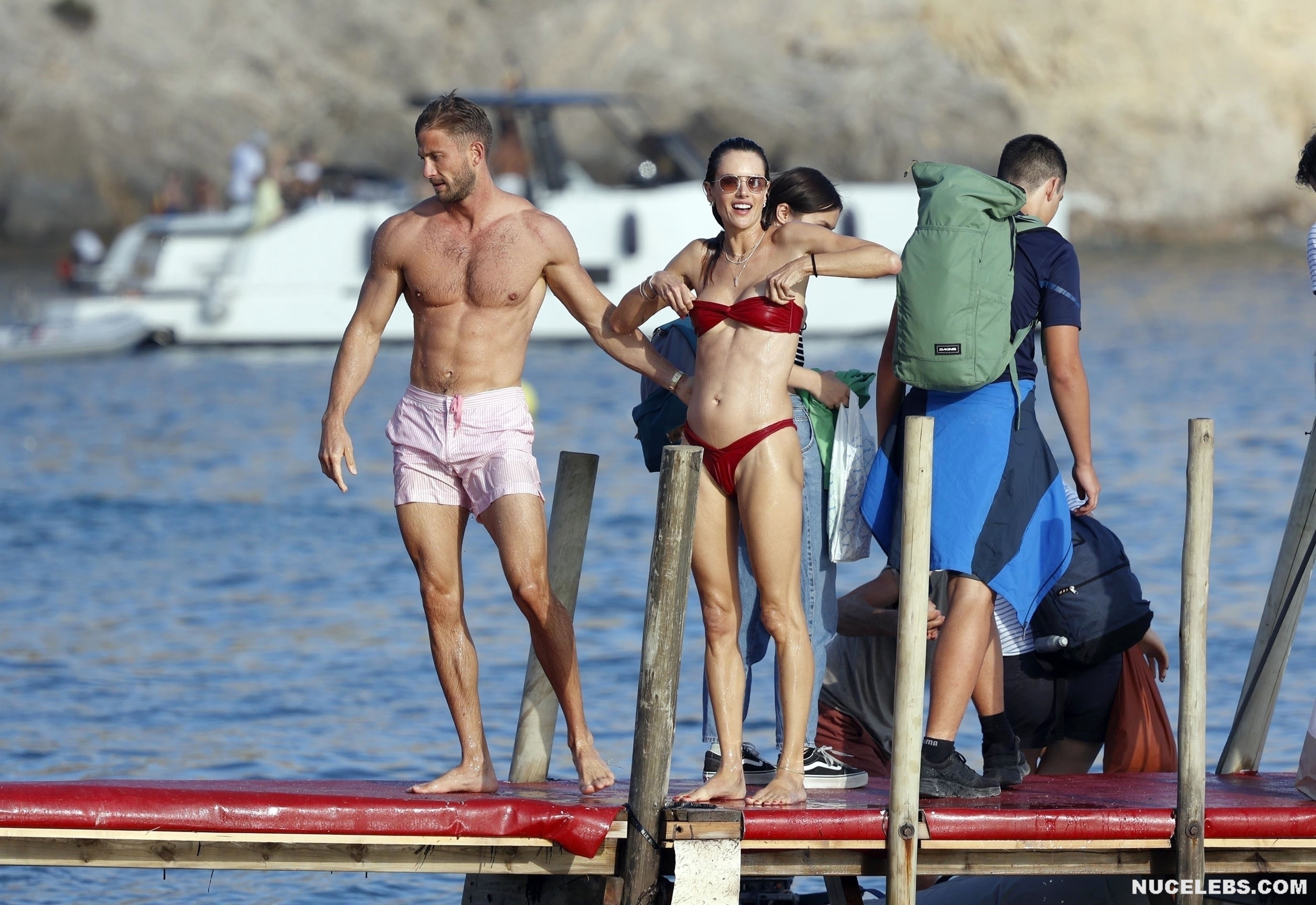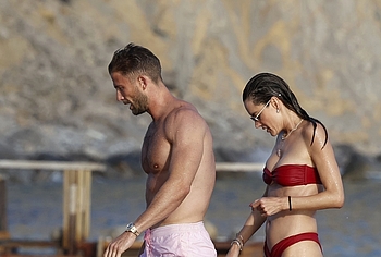 Get ready to howl with delight watching Alessandra Ambrosio during her beach vacation. This Brazilian supermodel did everything possible to attract attention to herself. Her bikini was a provocative red color, and besides, it was quite skimpy. You will definitely want to spank Alessandra Ambrosio’s awesome buttocks in a tight thong! By the way, when her strapless bra got wet, it began to slide down … And thanks to this, Alessandra Ambrosio sweet brown nipple slipped out!
