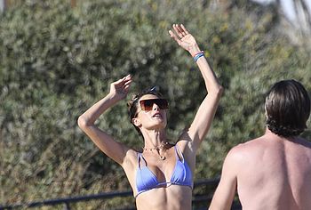 Many may envy the slender body of Alessandra Ambrosio, especially if they look at her nude. And this Brazilian supermodel seems to appear on purpose in public in miniature bikinis that barely cover her naughty bits. For example, not so long ago she was spotted on the beach in a blue bikini. It seemed that Alessandra Ambrosio’s nude boobies could jump out of a small bra every time she hit the ball while playing beach volleyball.