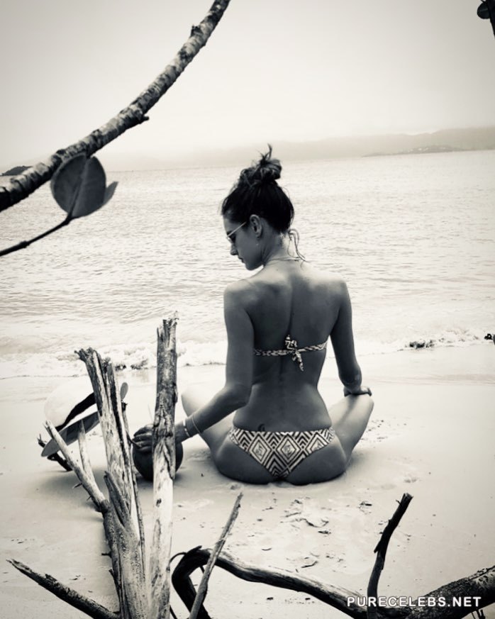 Alessandra Ambrosio has been featured on our website before, but never in photos as provocative as these. The gorgeous brunette posed in a revealing bathing suit on the beach with her firm nipples sticking out of her swimsuit. Your jaw will drop to the floor once you get a look at her amazing ass in the little tight thong. She even arched her back for the photographer to provide the perfect angle of her ass.