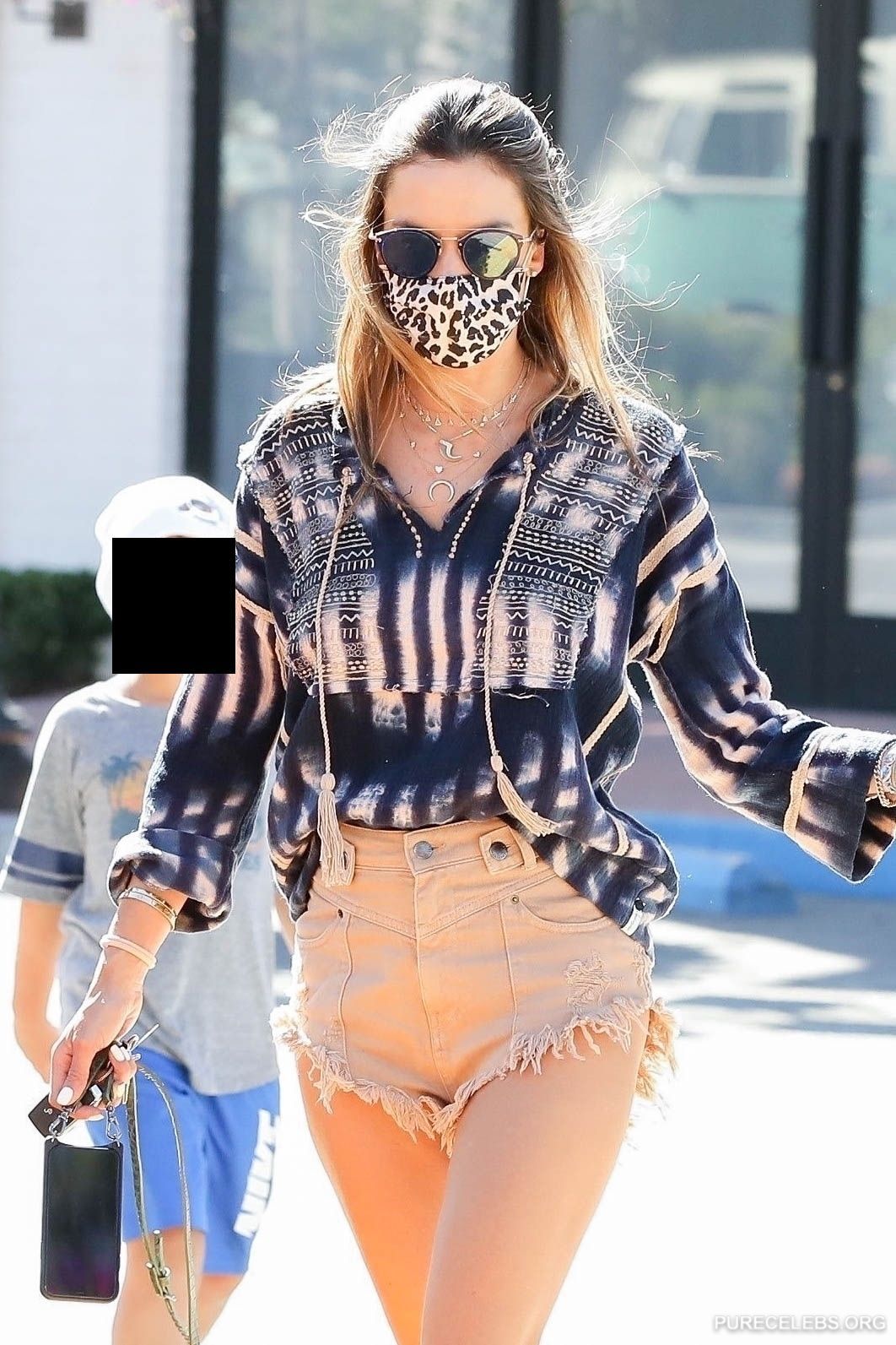 Paparazzi follow Alessandra Ambrosio everywhere trying to catch her nude. This Brazilian model was recently photographed on the street while walking. The celebrity looked very sexy in a sweater with print and beige shorts. And sunglasses and a mask with an animal print gave her a special piquancy. It is a pity that this time the celebrity wore panties. After all, her shorts were so short that we could see Alessandra Ambrosio nude pussy, and not just panties covering it.