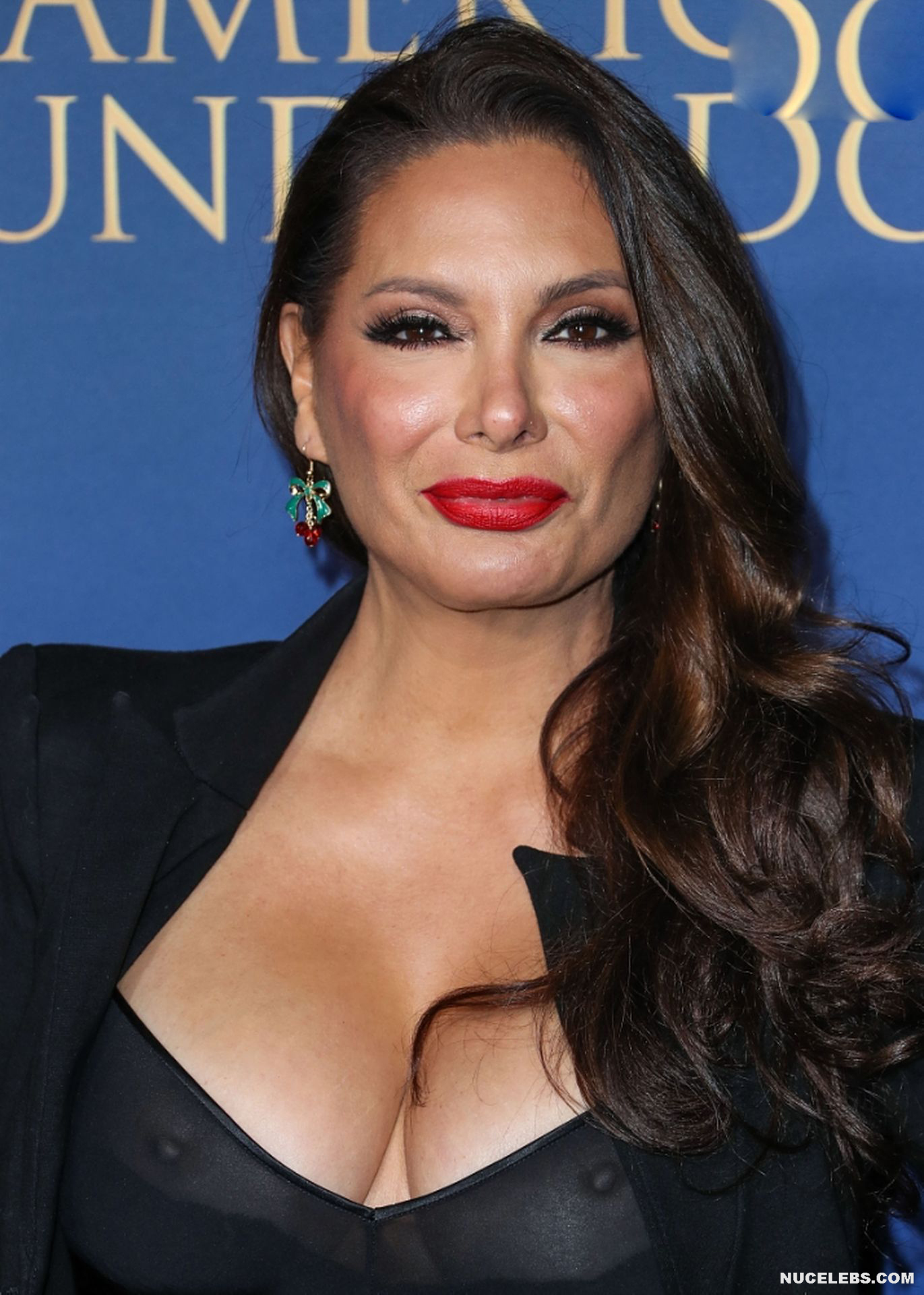 It seems that age has no power over Alex Meneses. After all, not so long ago, this 56-year-old actress made a real splash at one of the events. So, this hot brunette was wearing black flared pants, a black blazer and a top with a sheer top. Looks like Alex Meneses wanted to show off her nude boobs. After all, she did not wear a bra, and the top turned out to be transparent. So Alex Meneses nude titties with hard nipples were perfectly visible through!