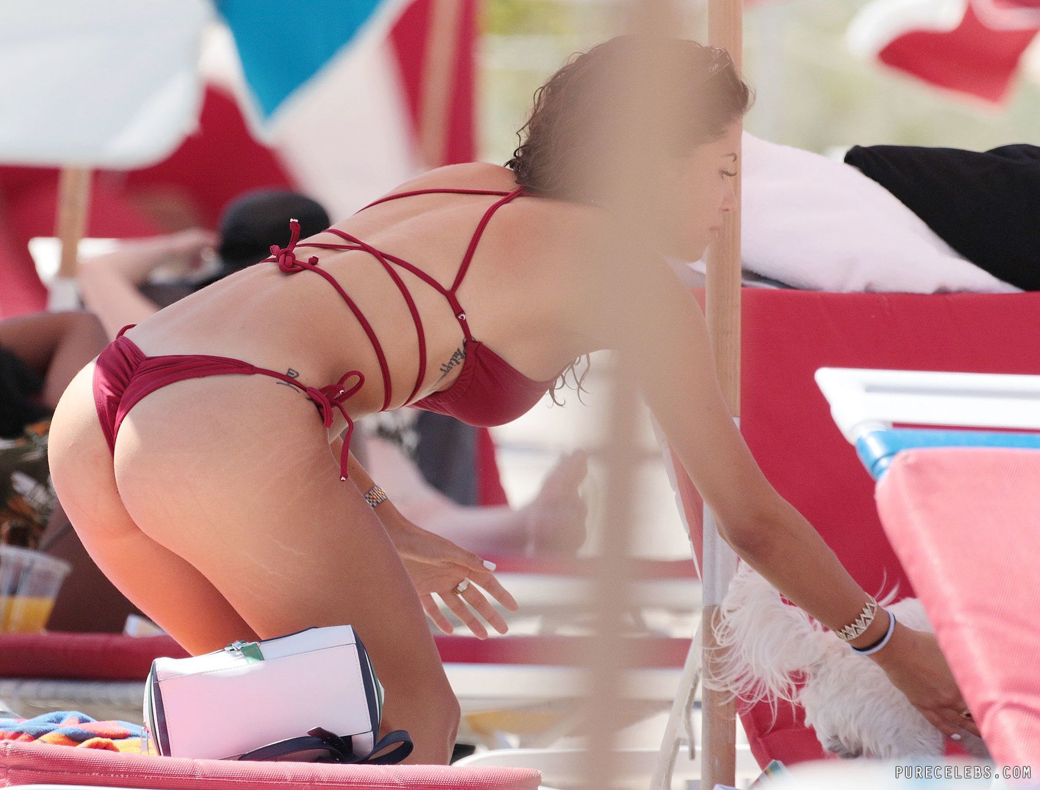 Alexandra Rodriguez has truly amazing legs and body. In her red bikini, her pussy is visible coz of tight panties and that’s a reason for many to start dreaming about it how her shaved pussy looks naked. In other shots you can see how attractive this famous model is and also how elegant and hot her butt is. This is a pure enjoyment for anyone’s eyes.