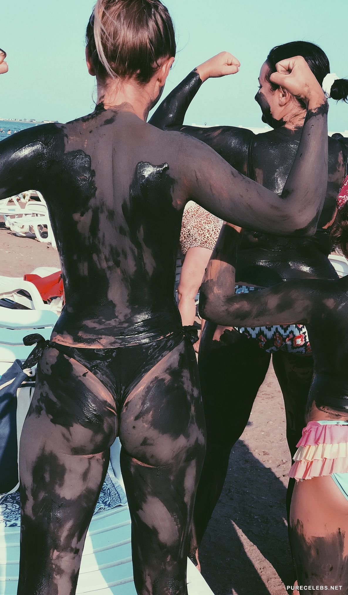 Romanian singer Alexandra Stan became famous thanks to her hit single titled “Mr. Saxobeat” and stayed famous thanks to her curvy body. The European blonde then further teased her fans and the general public alike, when she released these hot bikini photos where she’s covered in mud on the beach and showing off her ass during a summer vacation. As an extra treat, she also let us all have a look at her marvelous tits.