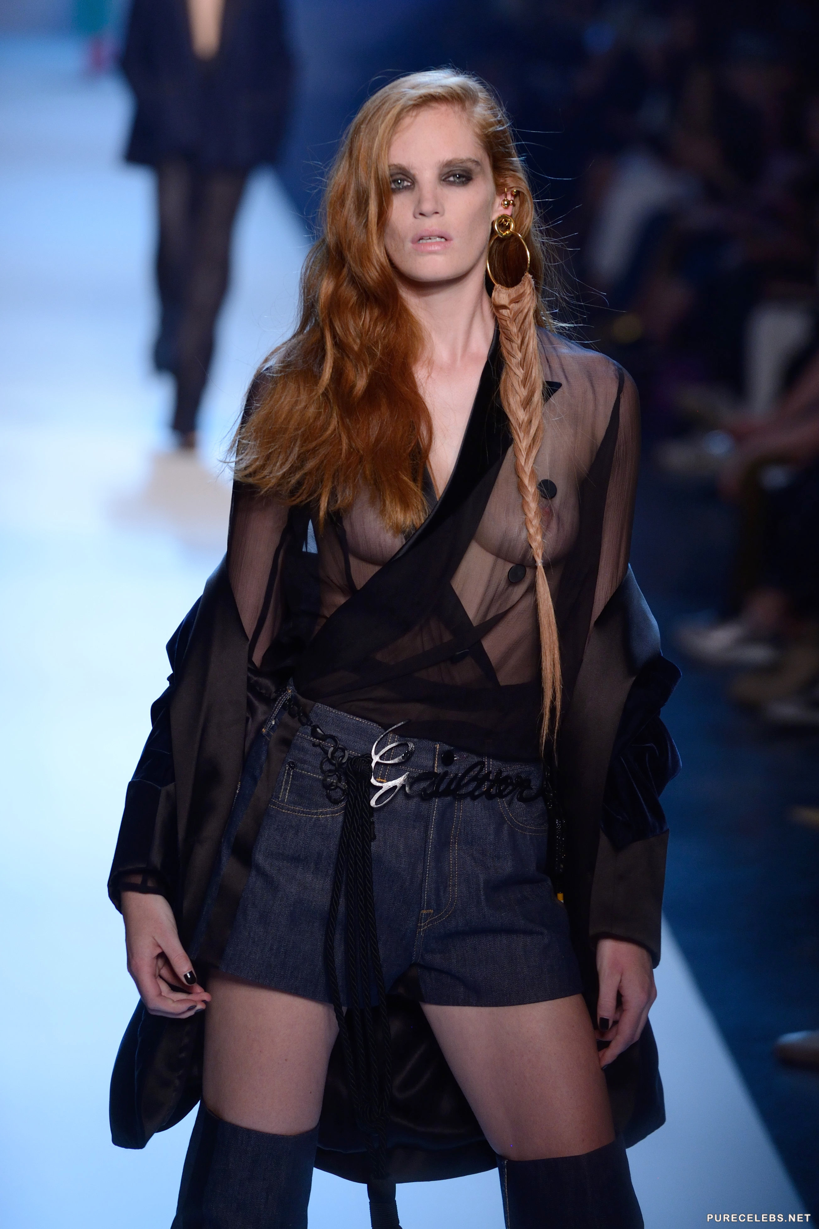 Brand ambassador for L’Oreal Paris and Victoria’s Secret Angel, Alexina Graham is wearing a heavy, smokey- eyes make up, black, see- through blouse with no bra under and a black blazer that is still not covering her tits, so everyone can enjoy staring at what they like the most. This honey looks astonishing in whatever she might be wearing, no wonder she is being wanted by many fashion houses.