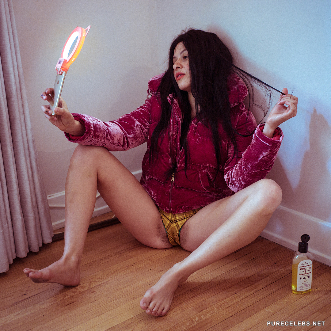 Former star of the hit TV show Arrested Development, Alia Shawkat knows just how to have a good time with herself. This hot brunette was the latest victim in a hacking scandal which leaked nude photos of the plump Alia masturbating on her couch. Firstly she spread body oil all over her hairy pussy to make it nice and slippery and after that began to rub her clit and moan.
