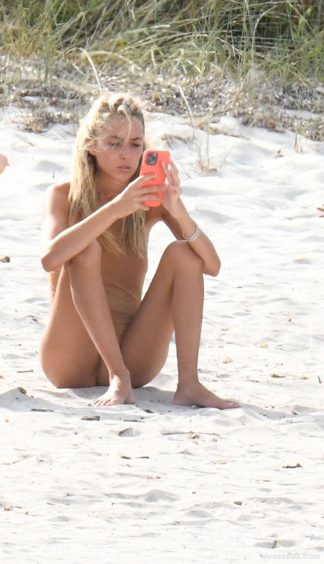 Hot Italian model Alice Campello had a great time at the beach. You can also admire pictures of her relaxing, as well as check out her slender figure in a beige swimsuit. It’s a shame that Alice Campello didn’t show her nude body this time. Now we can only imagine how Alice Campello looks nude boobs, looking at her tight swimsuit. But her wonderful ass could be clearly seen, especially when she bent over.