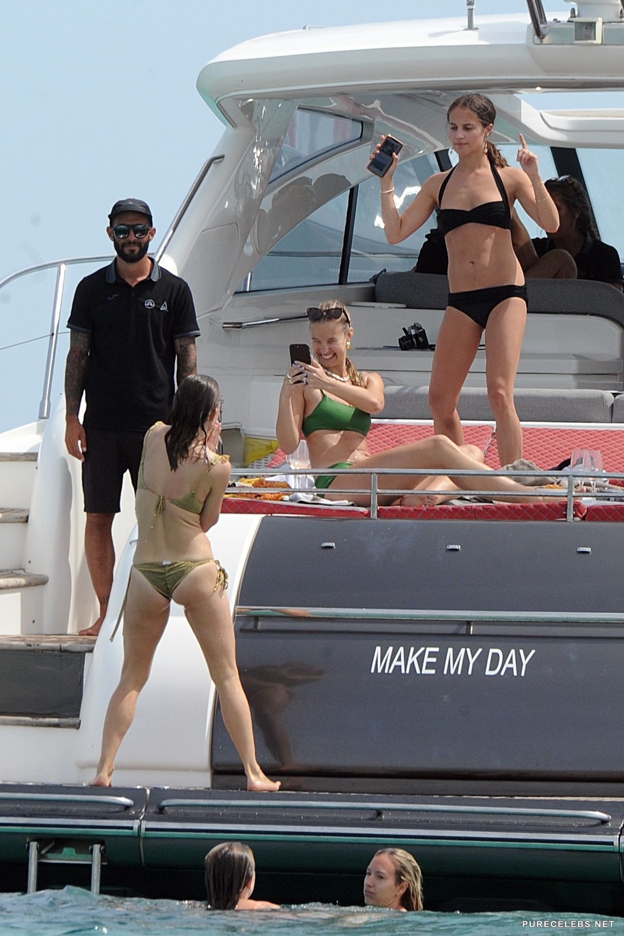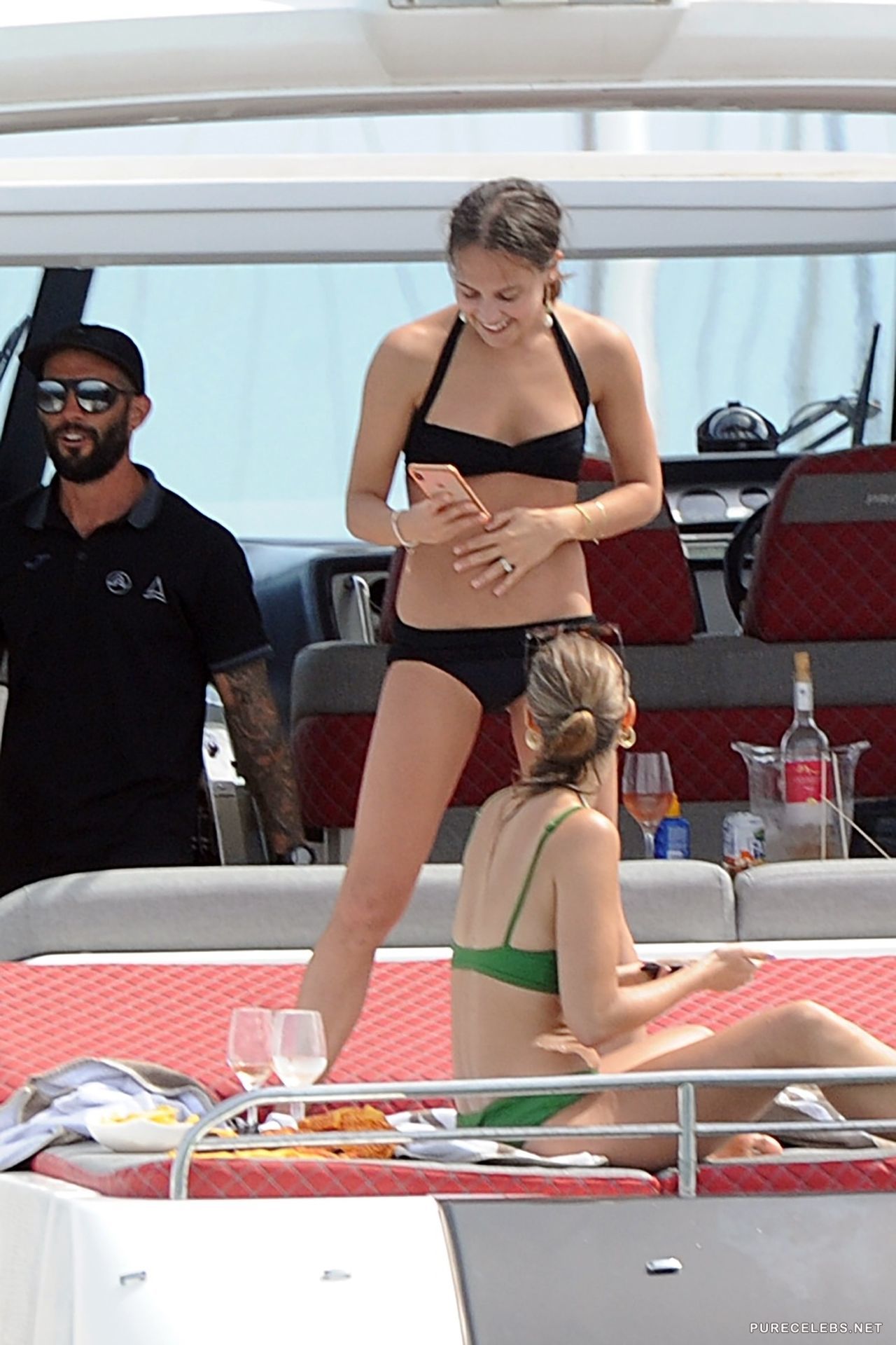 Swedish actress Alicia Vikander had a great time, having fun with her friends on a yacht. The celebrity was wearing a black tight bikini, in which her sweet ass looked just incredible. After resting on the yacht, the girls decided to make a joint photo, in which Alicia flashed her naked tit with a hard nipple. Her friends quickly straightened her black blouse, but it was too late, because paparazzi caught that moment.