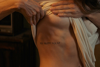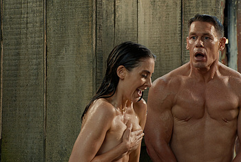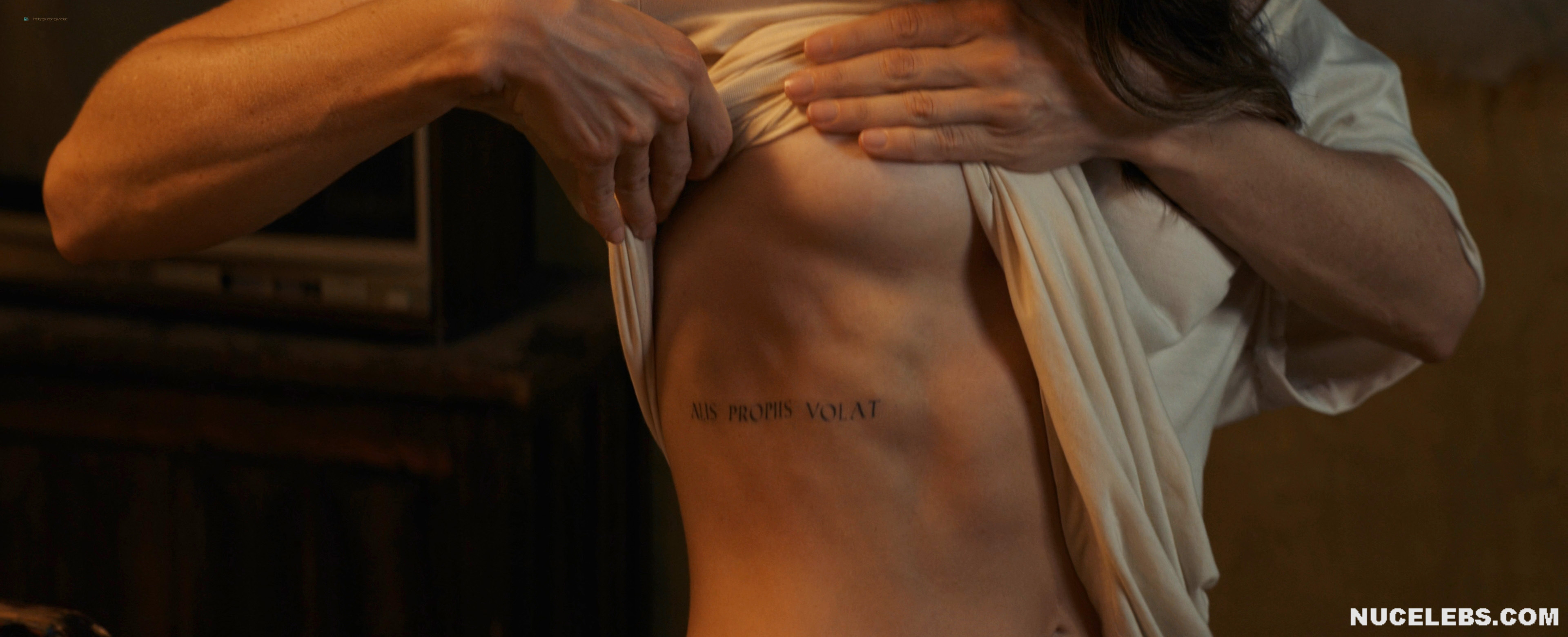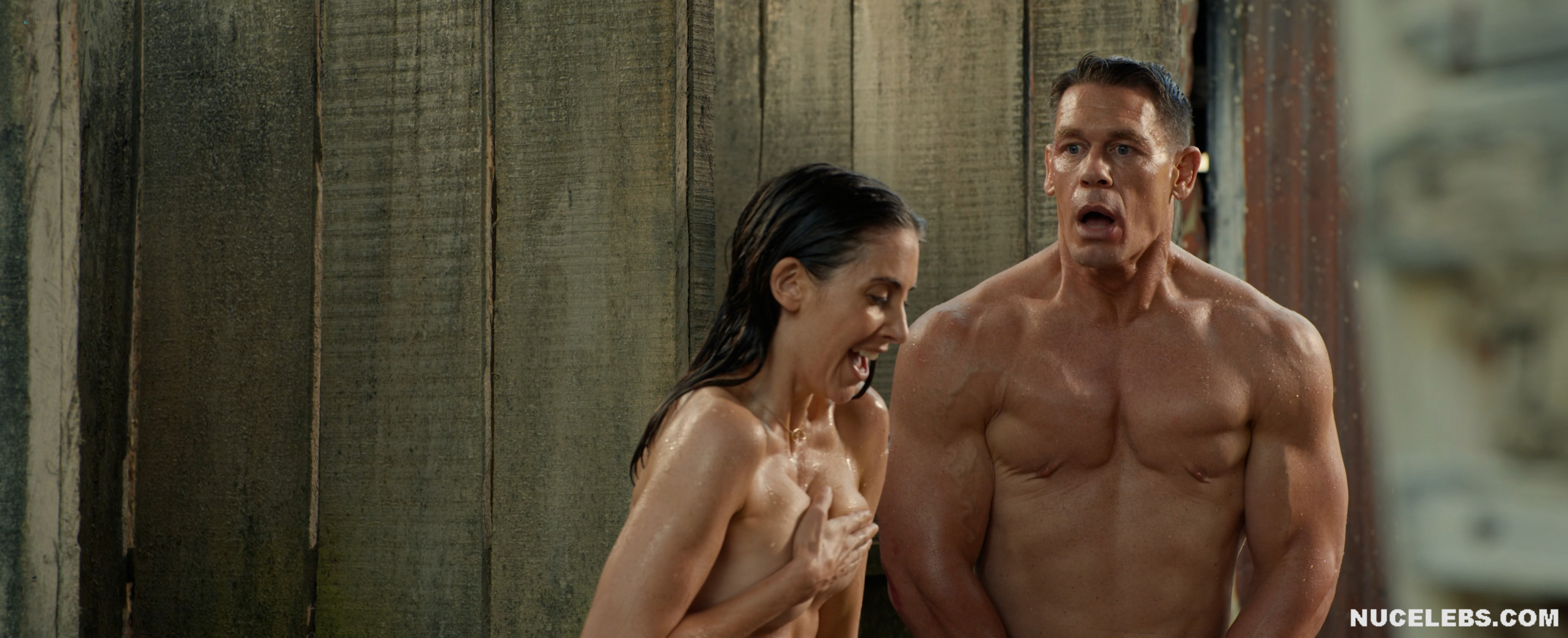 Alison Brie almost showed her nude tits to the public in Freelance. This American actress just got out of the shower and came face to face with a man who came out of the next shower. Alison Brie had a hard time covering her nude tits with her hand because they are so juicy! Meanwhile, her other hand covered her sweet pussy… By the way, this celebrity also showed off her tattoo under the breasts and also on the thighs of the man.