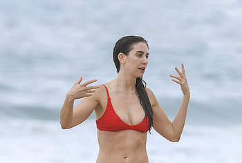 The subtle nuances of Alison Brie’s beauty, from the sparkle in her eyes to the curve of her smile, contribute to her captivating presence. This celebrity loves to impress the public in everyday life, not just on screen. Thus, Alison Brie very often appears on the beach in miniature bikinis. Check out her poking nipples in the wet green bikini she showed off as she emerged from the water. And when this star was swimming in a red bikini, she even had to periodically hold her tits with her palms so that they would not jump out.