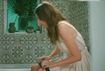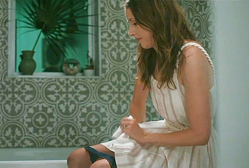 Take a look at the incredibly sexy Amanda Crew in “Some Other Woman”. In this scene, we see Amanda sitting on the toilet, but all we can focus on is how she pulls up her tiny black thong. It’s a shame that the dress hides Amanda Crew’s pussy!