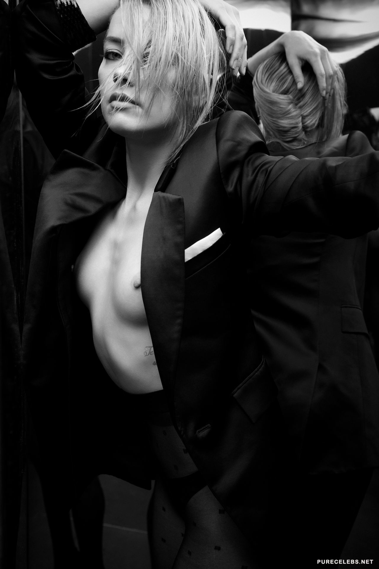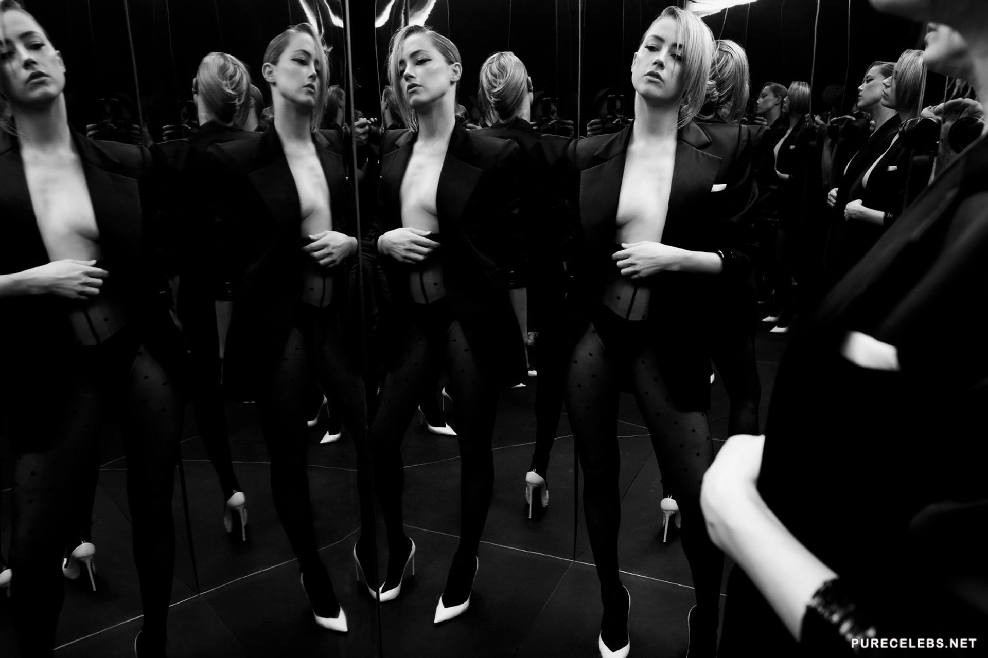 American actress Amber Heard was not afraid to try on very frank and sexy images, posing in a photo session for Interview Magazine. The celebrity was dressed in outfits through which her beautiful breasts were perfectly visible and also posed in black tights and an unbuttoned jacket, demonstrating her charming boobs with hard nipples. It is simply impossible to look away from this star, she looked so seductive!