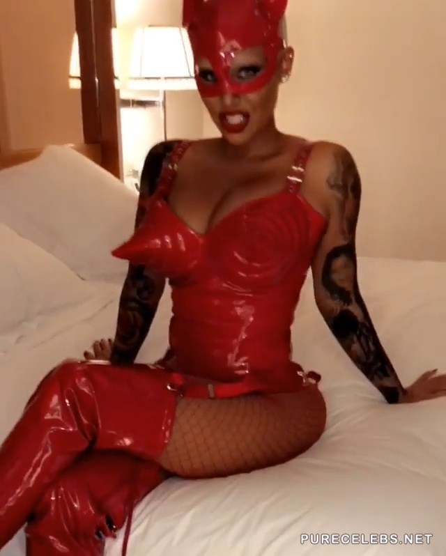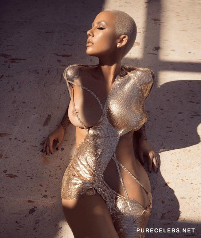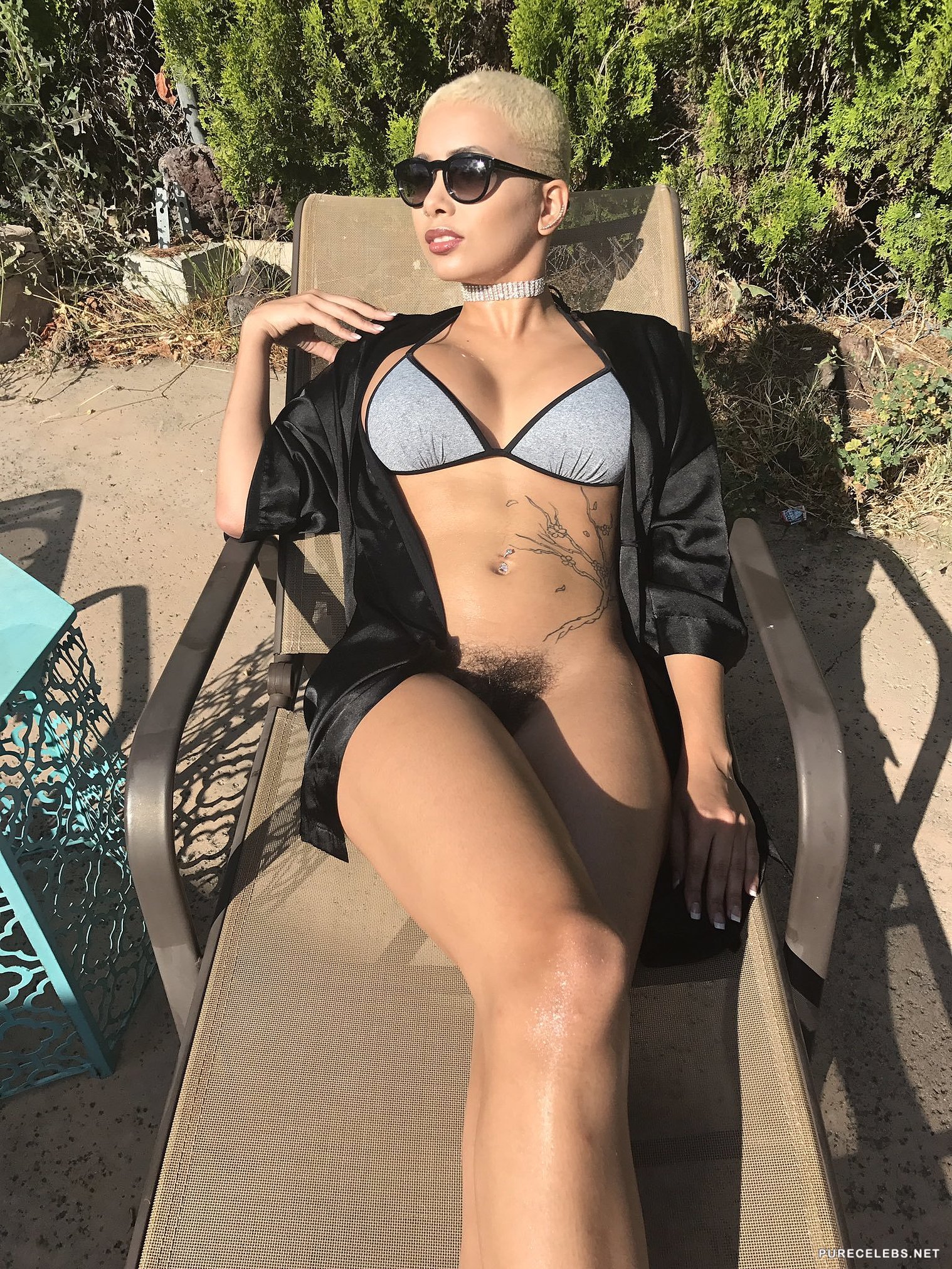 Paparazzi managed to catch the American model Amber Rose during her beach vacation. Needless to say, looking at this star was breathtaking! It looks like this celebrity decided to drive everyone crazy by appearing on the beach in a petite black swimsuit. It seemed that Amber Rose’s nude huge tits would jump out of her swimsuit at any moment. By the way, just such an oops moment happened to her blonde friend. Amber Rose had to help this girl tie a swimsuit to cover up her nude boob with a brown nipple.