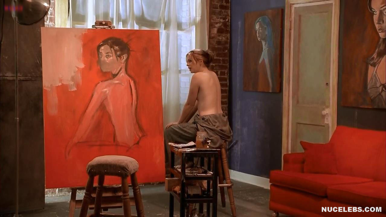 This celebrity played an amazing role in the movie Spiral (2007). At first, Amber Tamblyn posed for the artist in sexy white lingerie. However, then the girl grew bolder and decided to pose topless. So, Amber Tamblyn sat with her back and only slightly covered her nude boobs with her hand. Of course, the artist could not resist the beauty of this girl, and had sex with her after he finished painting.