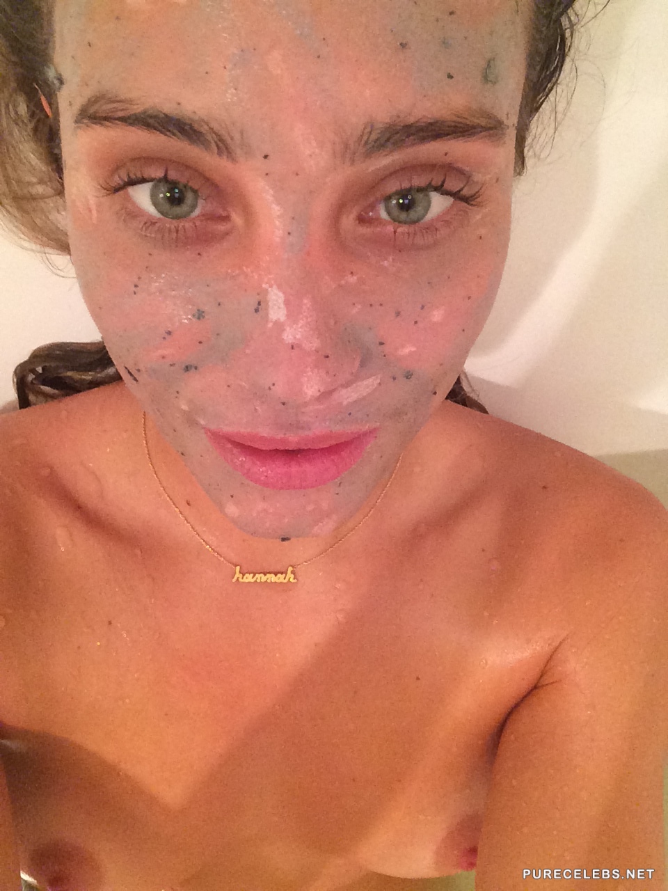 We are happy to report that hackers are at it again and their latest victim is American fashion model Hannah Davis. This brunette’s steamy selfies were leaked onto her social media account showing Hannah in her bathroom topless wearing some green lace panties. She tried her best to conceal her perky natural tits with her arm but only managed to cover her nipples in a few of them.
