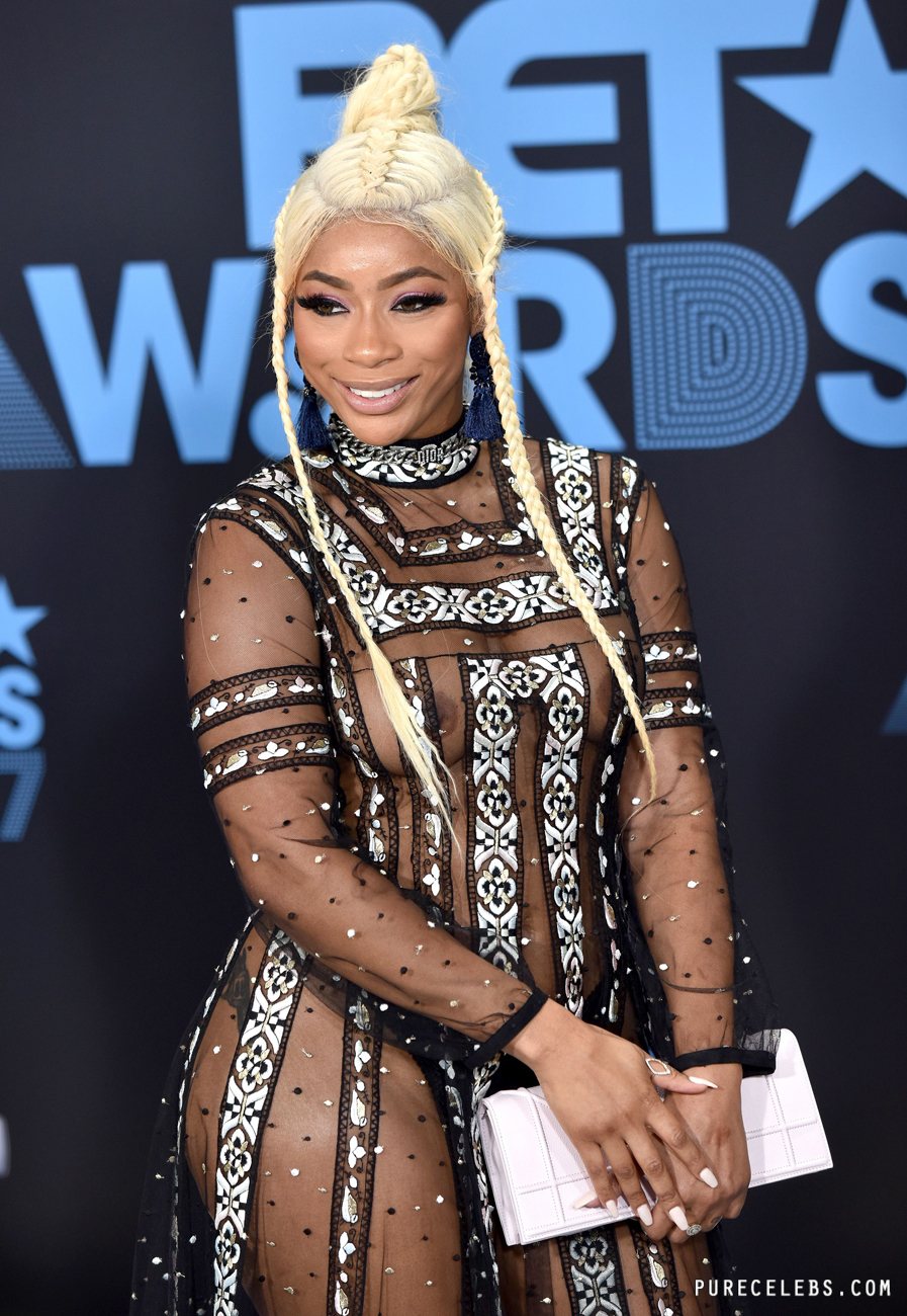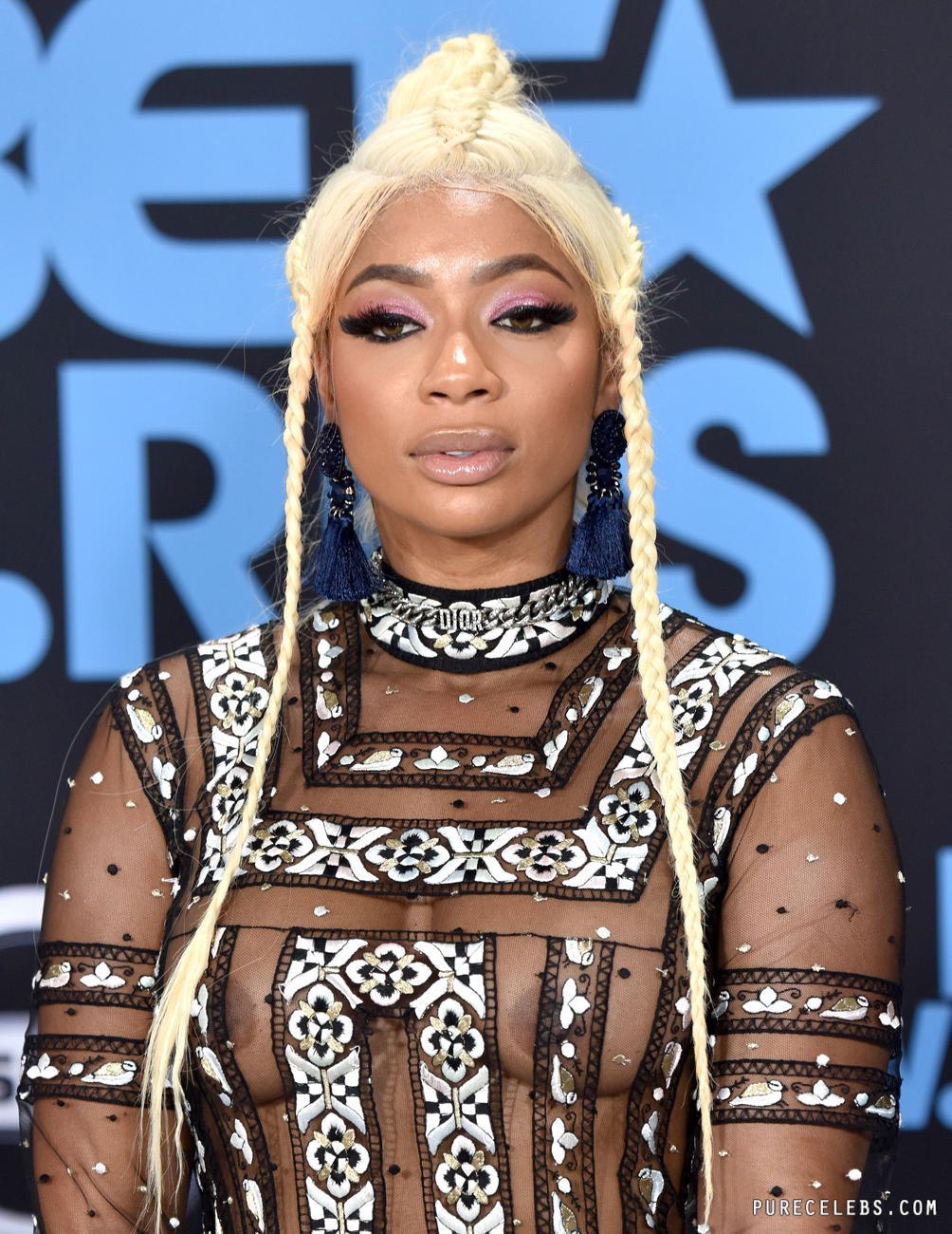 American reality star Tommie Lee showed off her nude breasts in public. This celebrity loves to be the center of attention. That is why she arrived at the event in a transparent outfit, decorated with white ornaments. Tommie Lee was wearing black thongs that covered only her nude pussy. Her gorgeous chubby ass seemed completely naked, because she was covered only by a strip of thong. And the big tits of the celebrity were naked, and her big brown nipples were visible.