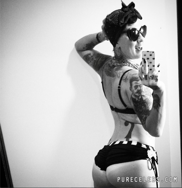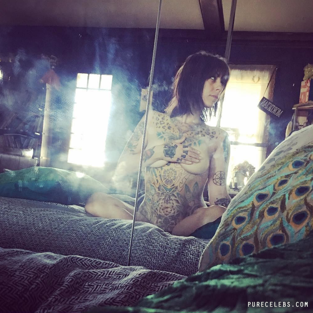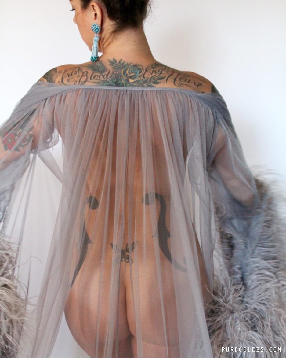 American reality television personality Danielle Colby is not shy about posing nude. For example, this celebrity with a beautiful hairstyle posed in front of the camera frontal naked. I think you see how sexy her juicy boobies with small nipples looked. And the nude pussy of Danielle Colby is breathtaking! Also, this beauty did not forget to boast of her awesome buttocks, lifting her black dress up.