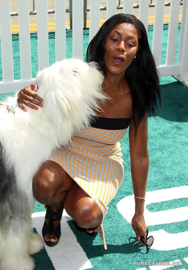 Omarosa Manigault is a good looking Afro-American business woman and TV personality, she’s 44 years old and i guess we can tell that she’s one of the hottest ebony MILFs when it comes to the celebrity ladies. Here’s a fantastic boob split moment that will appeal to all fans of curvy black ladies. Omarosa’s gorgeous titties are plain to see, such a top notch celebrity honey!