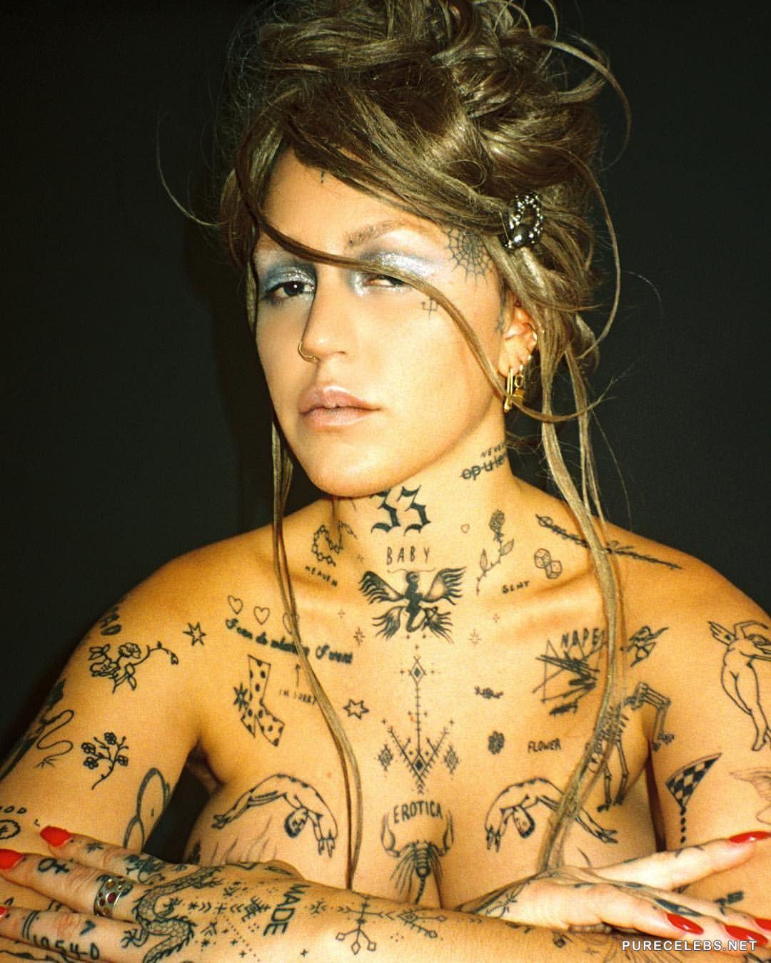Another photo shooting of Brooke Candy leaves everyone speechless, since this intriguing and quite wild girl is showing her naked, tattooed tits in sexy outfit and looks so fucking hot, again. This American singer obviously has many ways to get the attention of people around the world and keep it on her, for a long time. We can never have enough of this voluptuous honey, how about you? Can you?