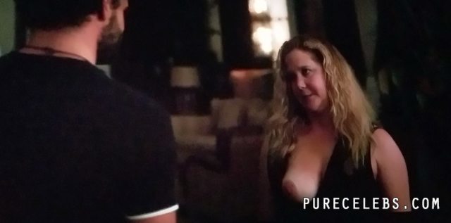 Are you ready to behold Amy Schumer’s nude boobies? This nude celeb flaunted her naughty bits every chance she gets. This actress looked so happy as she took a topless selfie in her bathroom. Also, this beauty did not hesitate to take pictures of her shaved pubis and bare butt, posing in a red tight top. Take a look at Amy Schumer nude tit with a brown nipple peeking out of her black dress while she was talking to a man.
