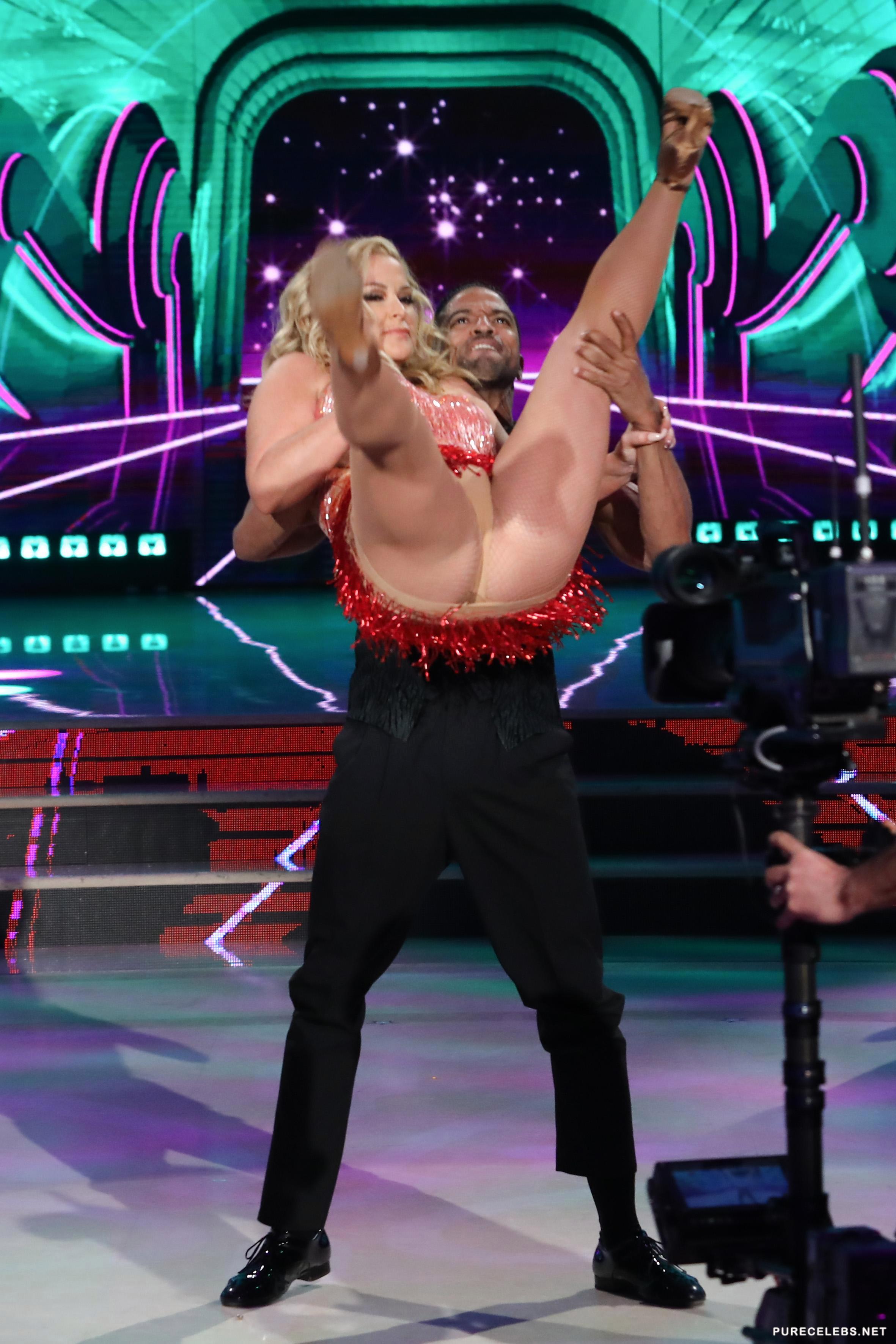 Dancing With Stars is great TV show where many famous people has showed up, and one of them is Anastacia who gave show of her own. As she was dancing with her partner, she supposedly forgot that she is wearing quite short and revealing skirt that completely went up during performance and thus give everyone a sight of her ass and panties. Her partner had problem focusing on dancing, since he was enthralled by the sight of her snatch.