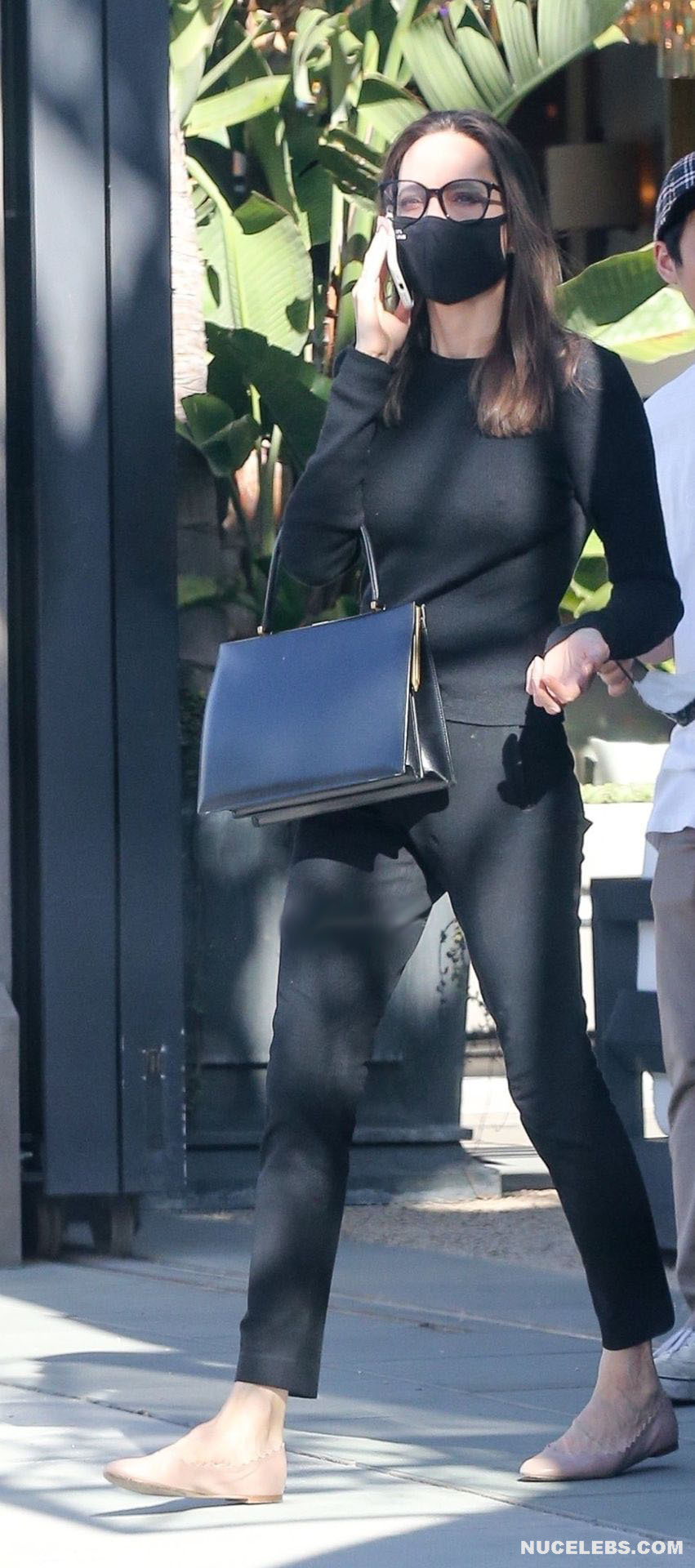 Lately Angelina Jolie rarely spoils us with her nude photos or videos. However, this Hollywood actress does not miss the chance to tease us. For example, not so long ago the paparazzi photographed this star on the street. Angelina Jolie wore a mask, black sweater and pants. By the way, her sweater was pretty thin, so Angelina Jolie’s nude tits with hard nipples showed through it!