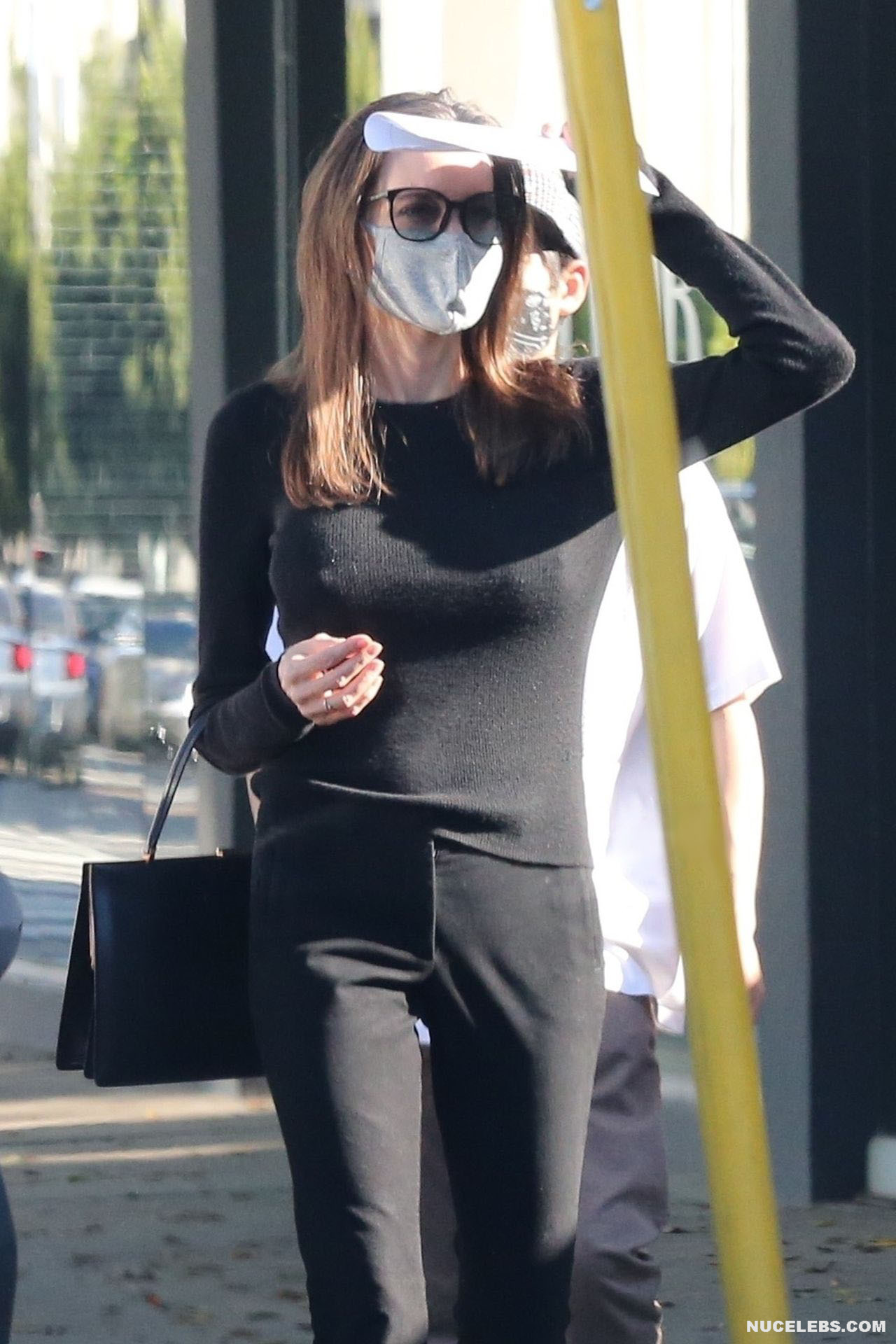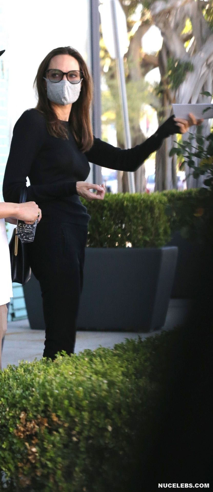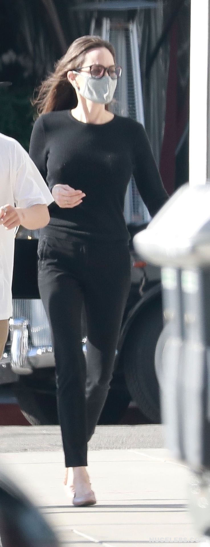 Lately Angelina Jolie rarely spoils us with her nude photos or videos. However, this Hollywood actress does not miss the chance to tease us. For example, not so long ago the paparazzi photographed this star on the street. Angelina Jolie wore a mask, black sweater and pants. By the way, her sweater was pretty thin, so Angelina Jolie’s nude tits with hard nipples showed through it!