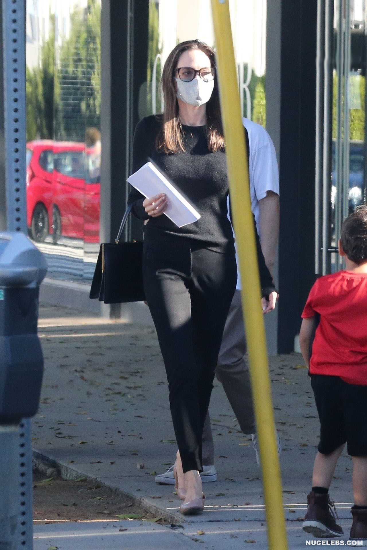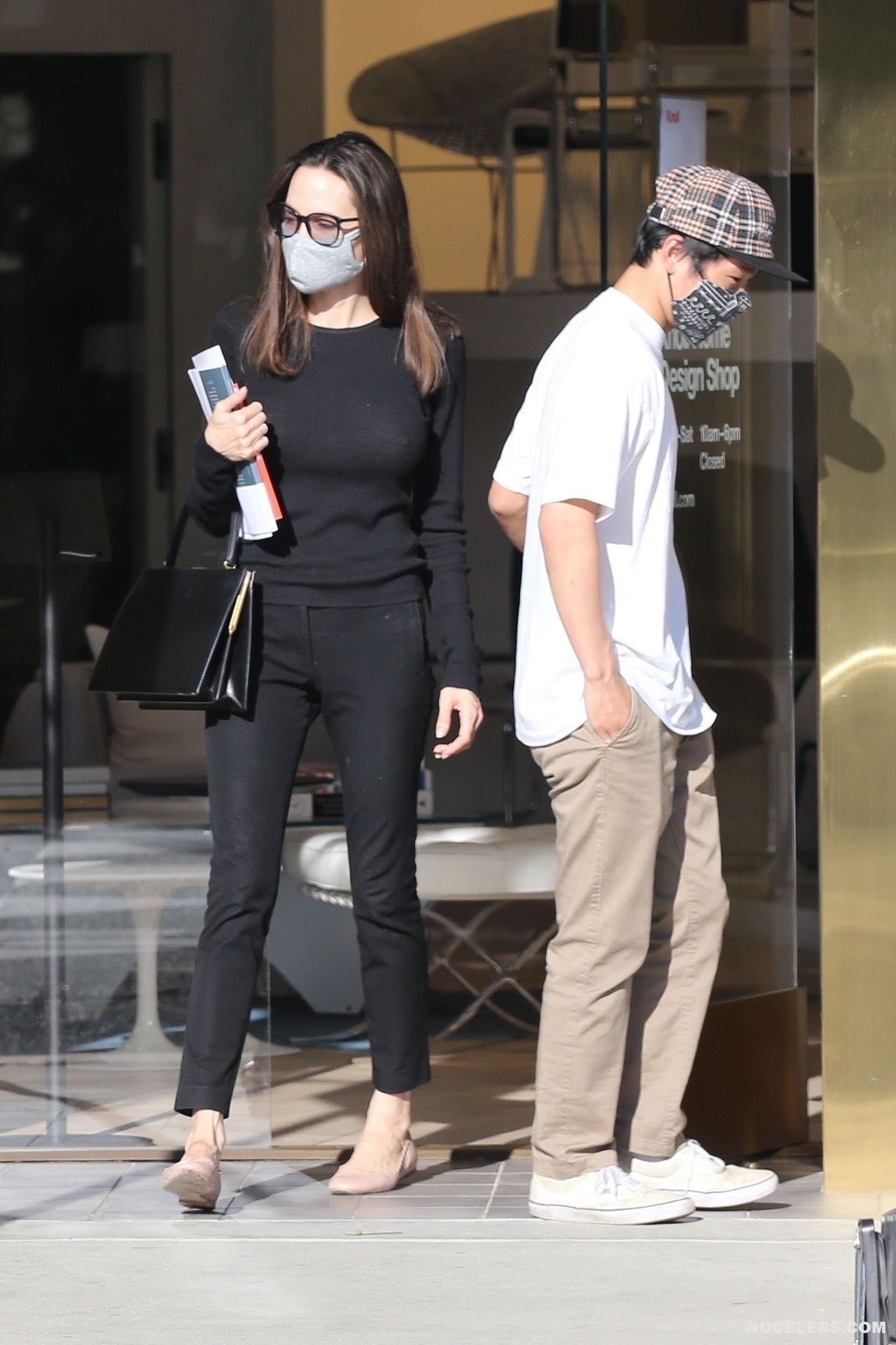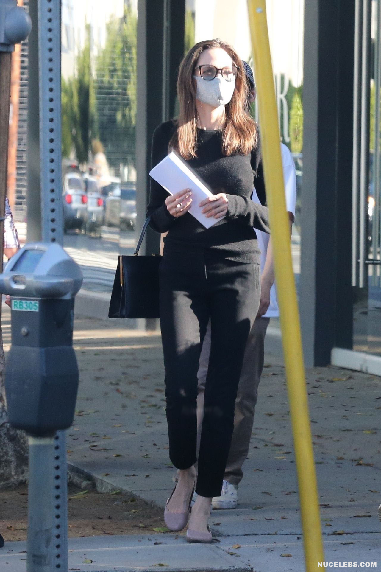 Lately Angelina Jolie rarely spoils us with her nude photos or videos. However, this Hollywood actress does not miss the chance to tease us. For example, not so long ago the paparazzi photographed this star on the street. Angelina Jolie wore a mask, black sweater and pants. By the way, her sweater was pretty thin, so Angelina Jolie’s nude tits with hard nipples showed through it!
