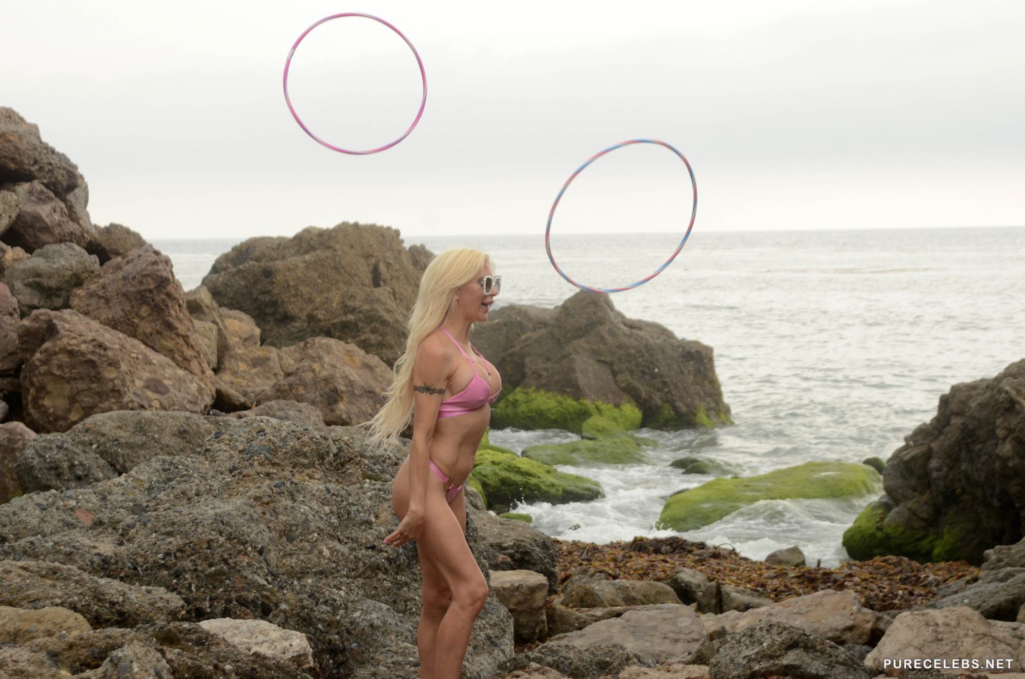 Woooow, is that a nice, round ass we see in one of the most amazing close- ups? Yes it is, and it’s Angelique Frenchy Morgan who has decided to not only put on a skimpy, pink bikini, but also to bend over in a very celebrity way, those moves you learn only by being a celebrity and give us a stunning view at her butt and that asshole of hers.