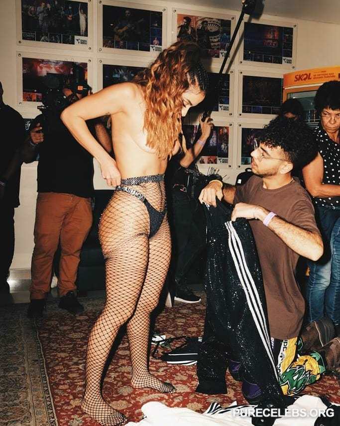 Brazilian singer Anitta will delight you with photos of her nude boobies and classy booty. Oh, this beauty loves to turn her back to the camera and show off her naked sweet buns, barely covered by thongs. For example, when she posed in yellow lingerie near the wall, her ass seemed naked. And this celebrity was photographed topless when she put on black mesh stockings. Anitta nude boobs with small nipples looked very sexy when she bent over.