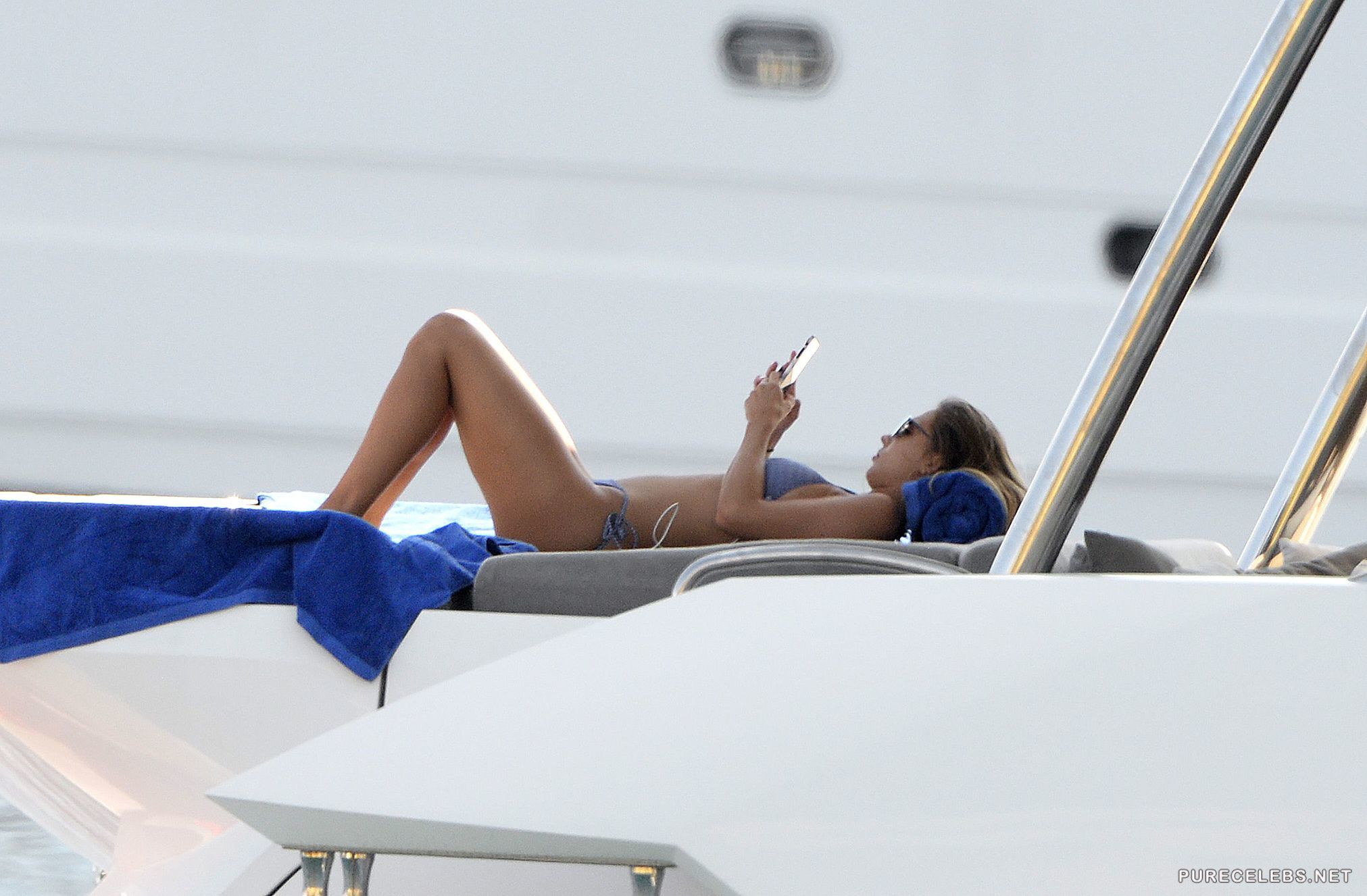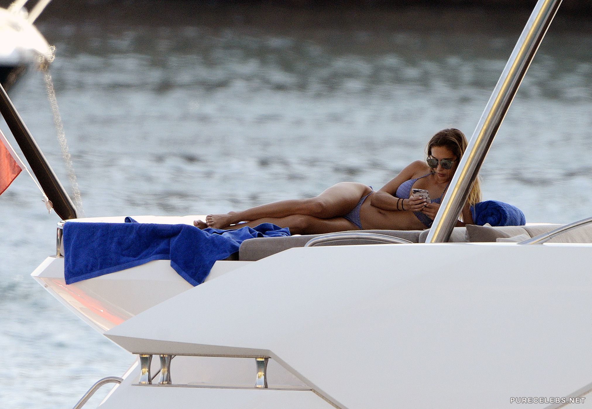 This young German Instagram model was seen enjoying her holiday on a yacht in a skimpy blue bikini. Paparazzi managed to snag a few premium shots of this gorgeous Ann Kathrin Brommel sexy body. This time the lovely babe was seen without her famous soccer player boyfriend. The stunning brunette laid in the sun posting hot selfies and snaps of her massive boobs.