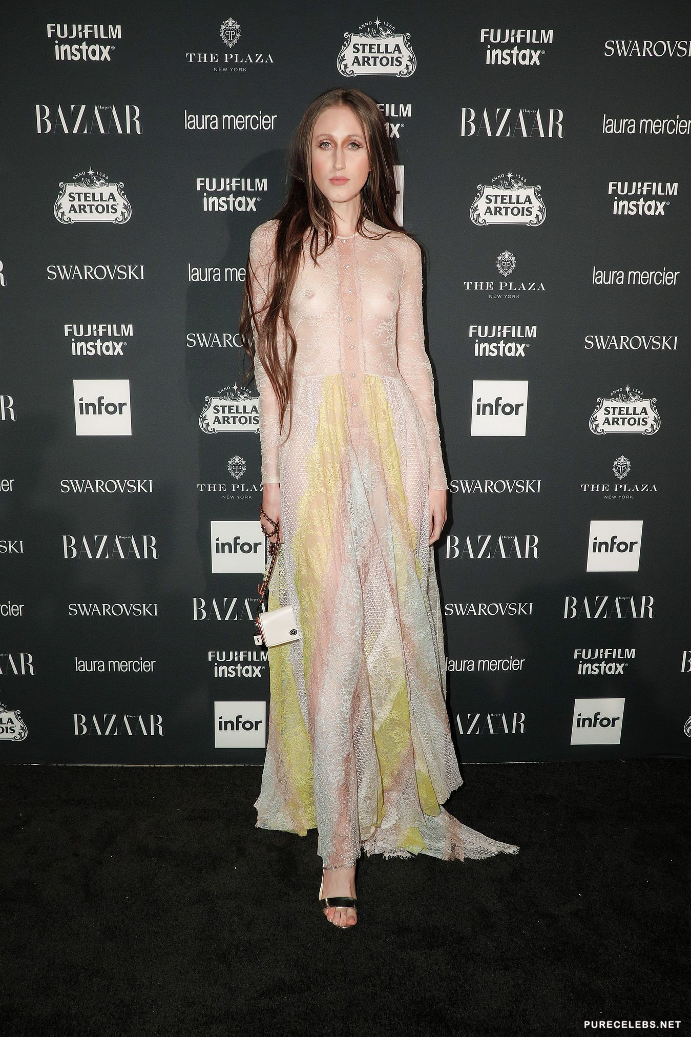 American fashion model Anna Cleveland showed her chic nude boobs on stage. This charming star was wearing a red long dress with a low neckline. By the way, it turned out that she was without a bra. So at one point, Anna Cleveland’s nude tits slipped out of a deep cutout. Oh, how sexy her little brown nipples looked! I would love to lick them!