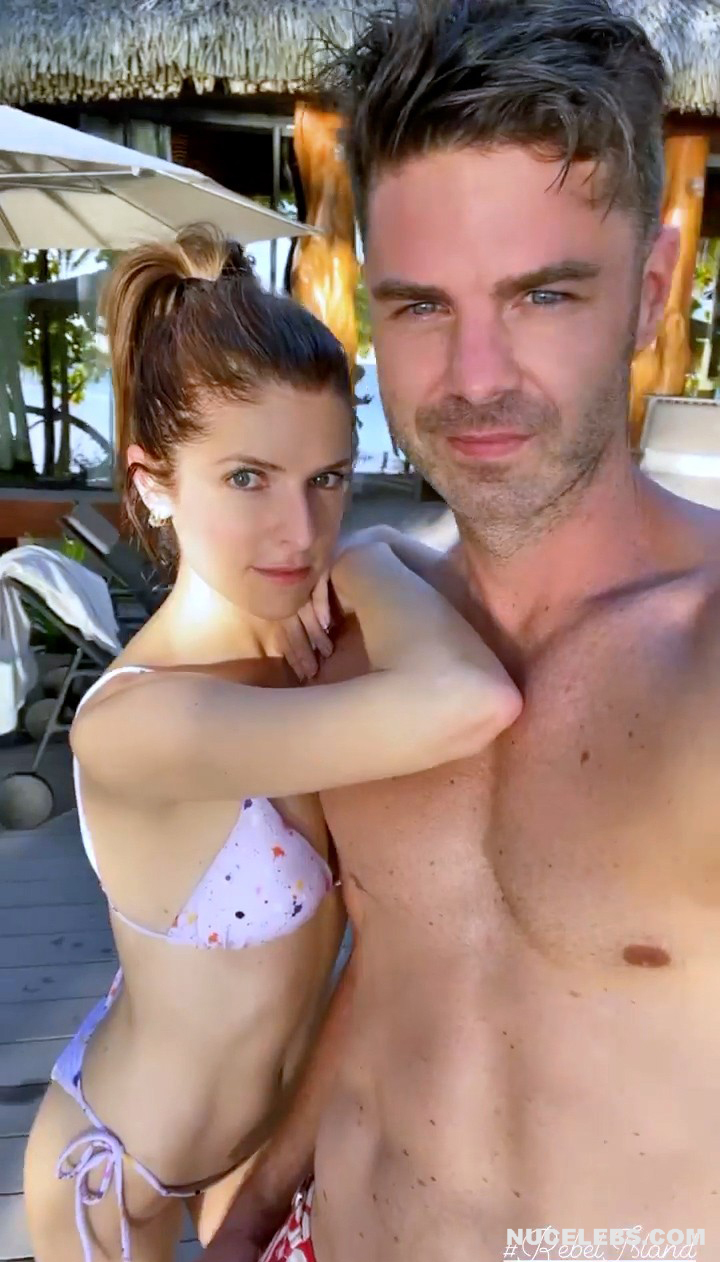 Anna Kendrick decided to show off her new bikini, and at the same time show off her slender figure. For this, the actress even starred in a short video where she posed with a guy. Anna Kendrick’s nude boobies were covered with small pieces of white fabric with a print. Her slender thighs in small panties also looked very sexy. Looking forward to more candid photos next time, Anna!