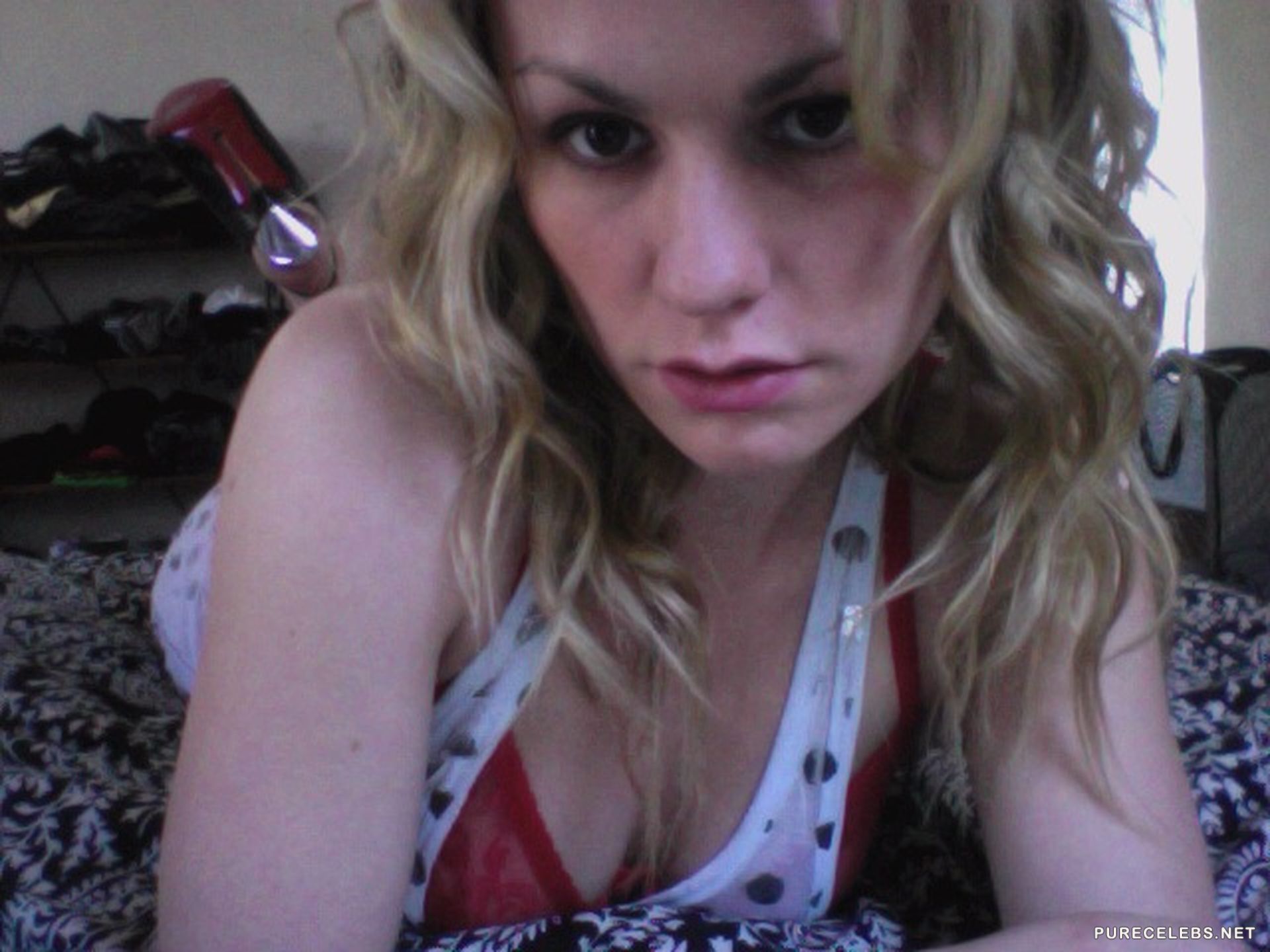 If any of you wanted to see actress Anna Paquin completely naked, then rejoice you have the opportunity. Recently, photos of the actress were stolen and leaked into a network showing off her in lingerie and also completely naked. A celebrity dressed in red lace lingerie looks insanely sexy. But even more sexy look her photos where she takes a bath completely naked, and we can enjoy her wonderful tits with hard nipples.