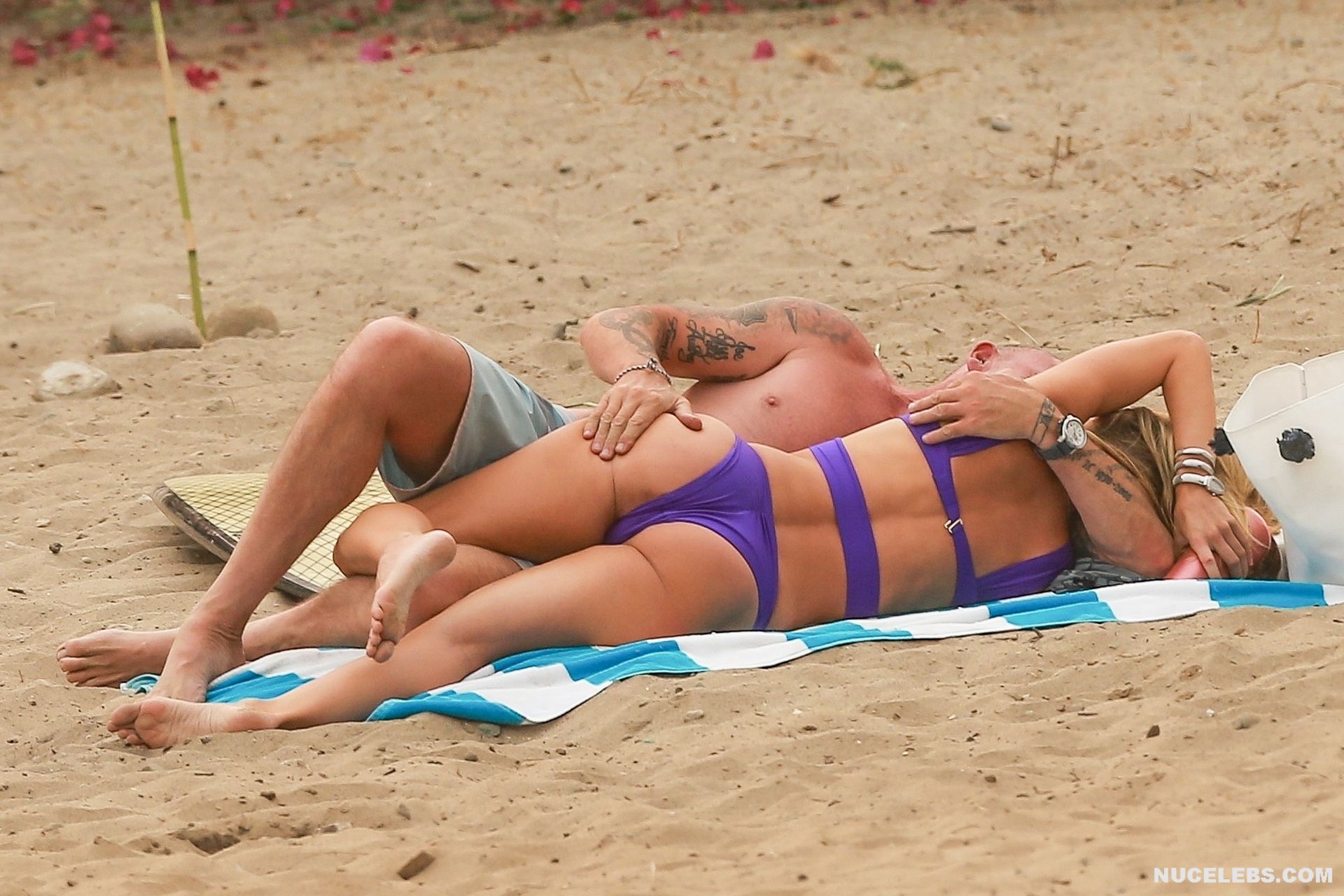 American actress AnnaLynne McCord turns out to be a very naughty girl. Paparazzi continue to spy on AnnaLynne McCord, hoping to catch her nude. But so far they have managed to catch this beauty during her beach holiday. The celebrity looked very sexy in a purple bikini that accentuated the curves of her body. Looks like she was having a great time sunbathing with Dominic Purcell. By the way, this male actor did not miss the opportunity to feel the gorgeous almost nude ass of AnnaLynne McCord. He also snuggled up to her juicy tits in a tight bra. Oh, he’s just incredibly lucky to be with such a hot babe, isn’t he?