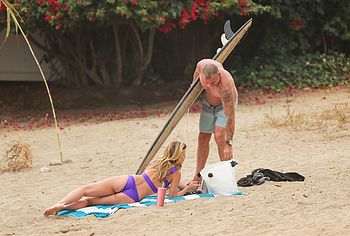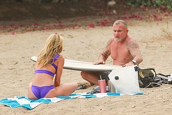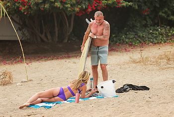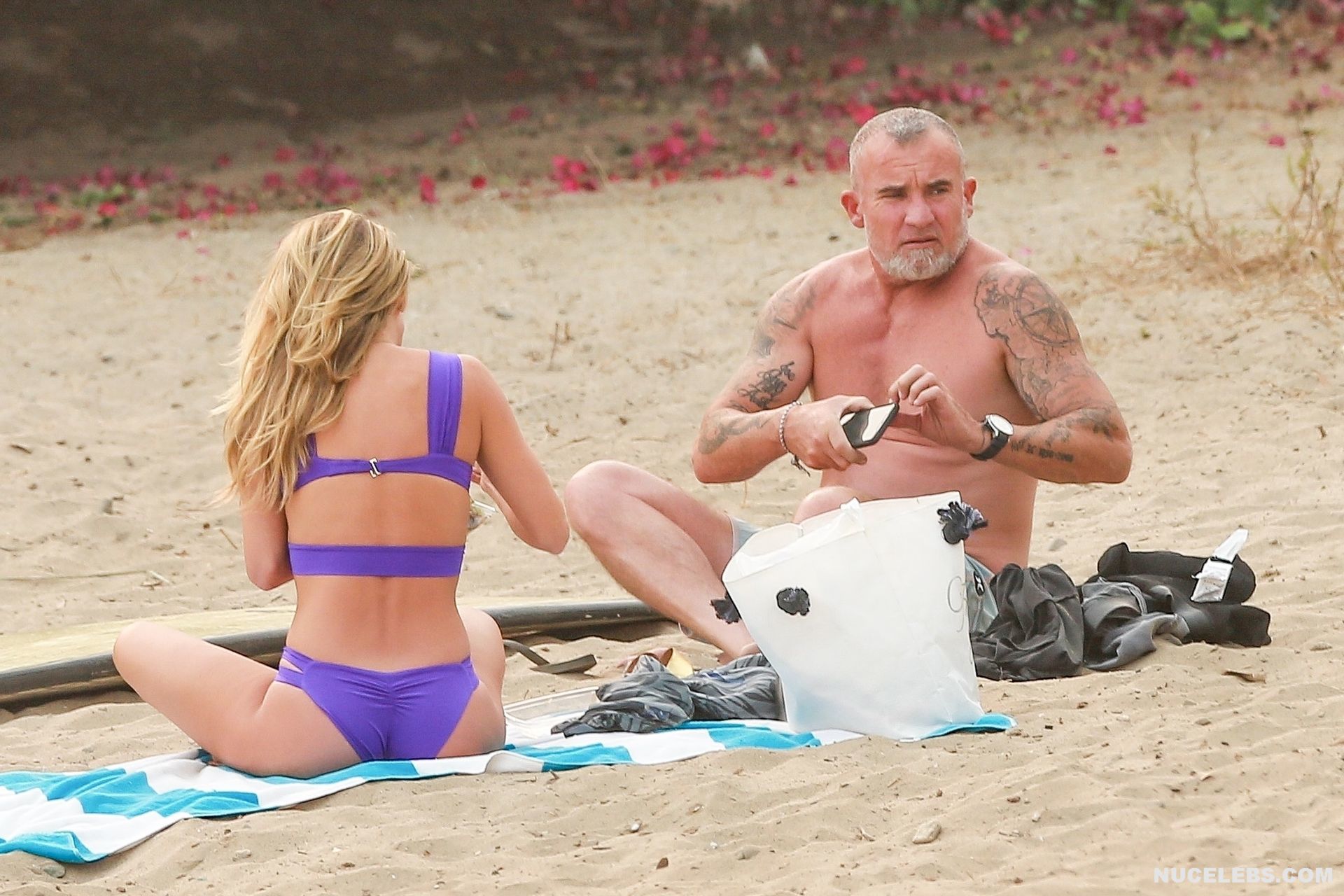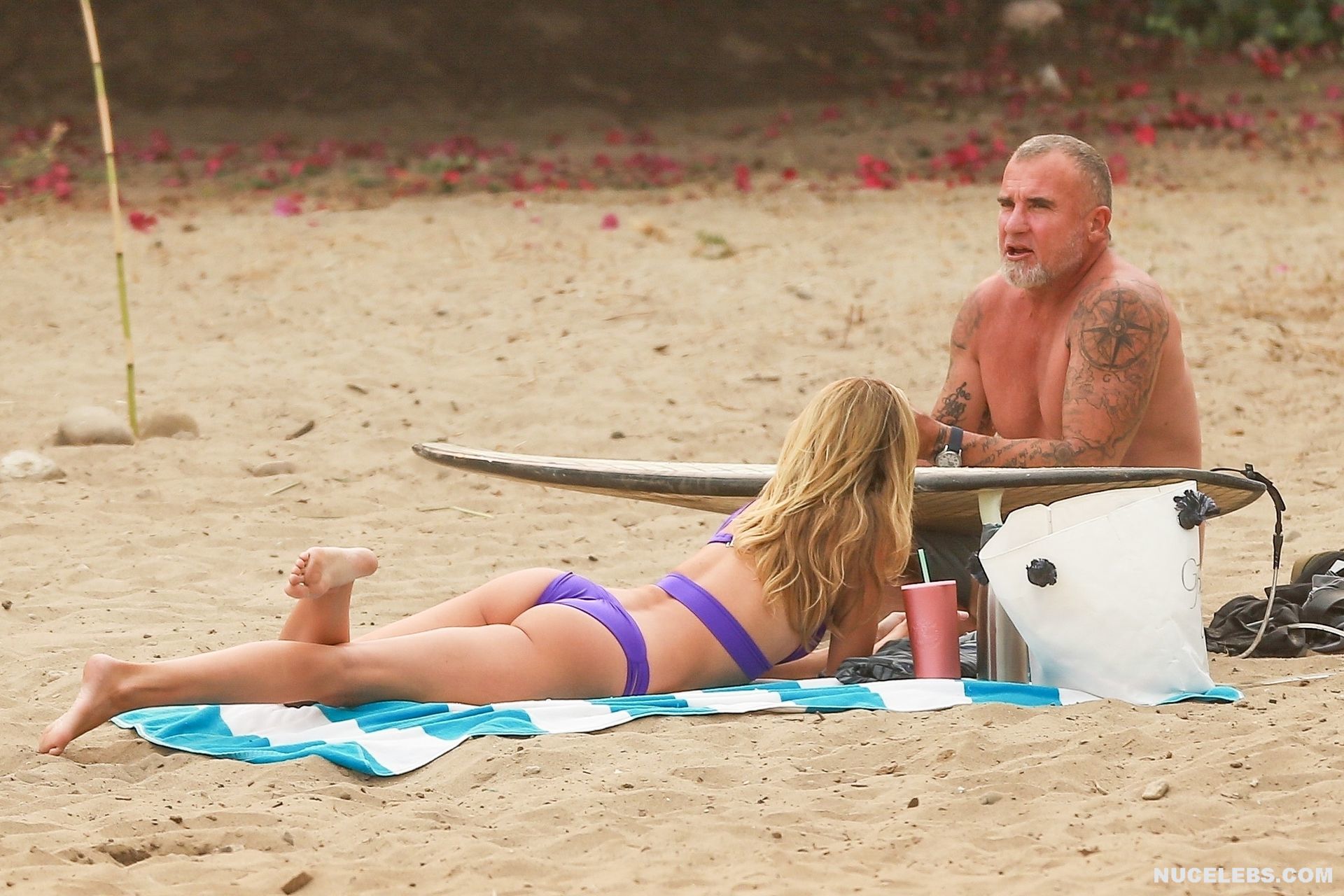 American actress AnnaLynne McCord turns out to be a very naughty girl. Paparazzi continue to spy on AnnaLynne McCord, hoping to catch her nude. But so far they have managed to catch this beauty during her beach holiday. The celebrity looked very sexy in a purple bikini that accentuated the curves of her body. Looks like she was having a great time sunbathing with Dominic Purcell. By the way, this male actor did not miss the opportunity to feel the gorgeous almost nude ass of AnnaLynne McCord. He also snuggled up to her juicy tits in a tight bra. Oh, he’s just incredibly lucky to be with such a hot babe, isn’t he?