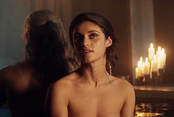 Anya Chalotra’s portrayal in the movies is nothing short of remarkable. You will drool looking at Anya Chalotra nude, sitting on the floor next to the bed in one of the scenes of the movie. While this British actress was displaying her magical powers, her clothes slipped off her. Anya Chalotra nude juicy titties jumped out and looked incredibly curvy!