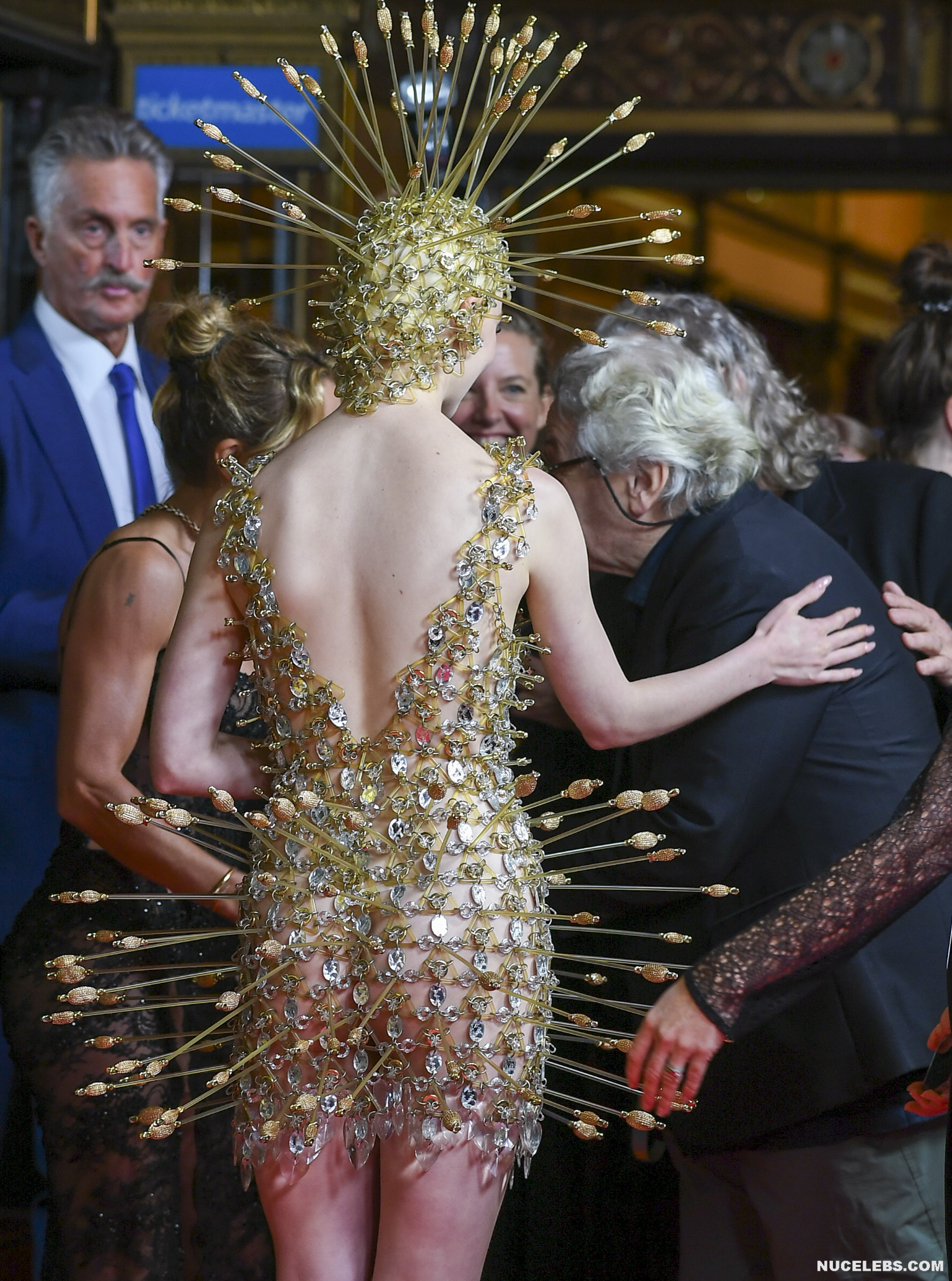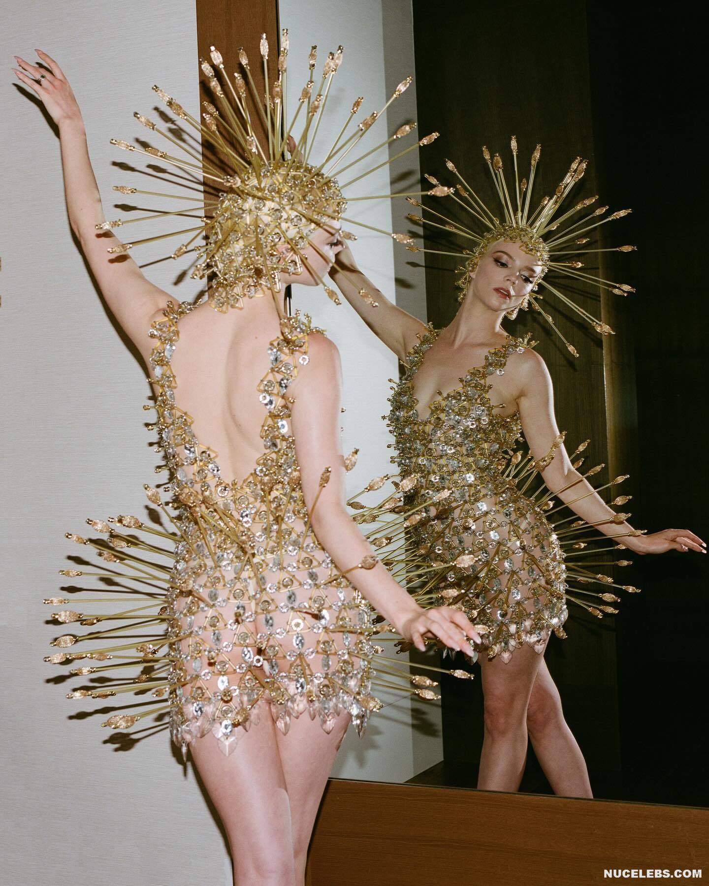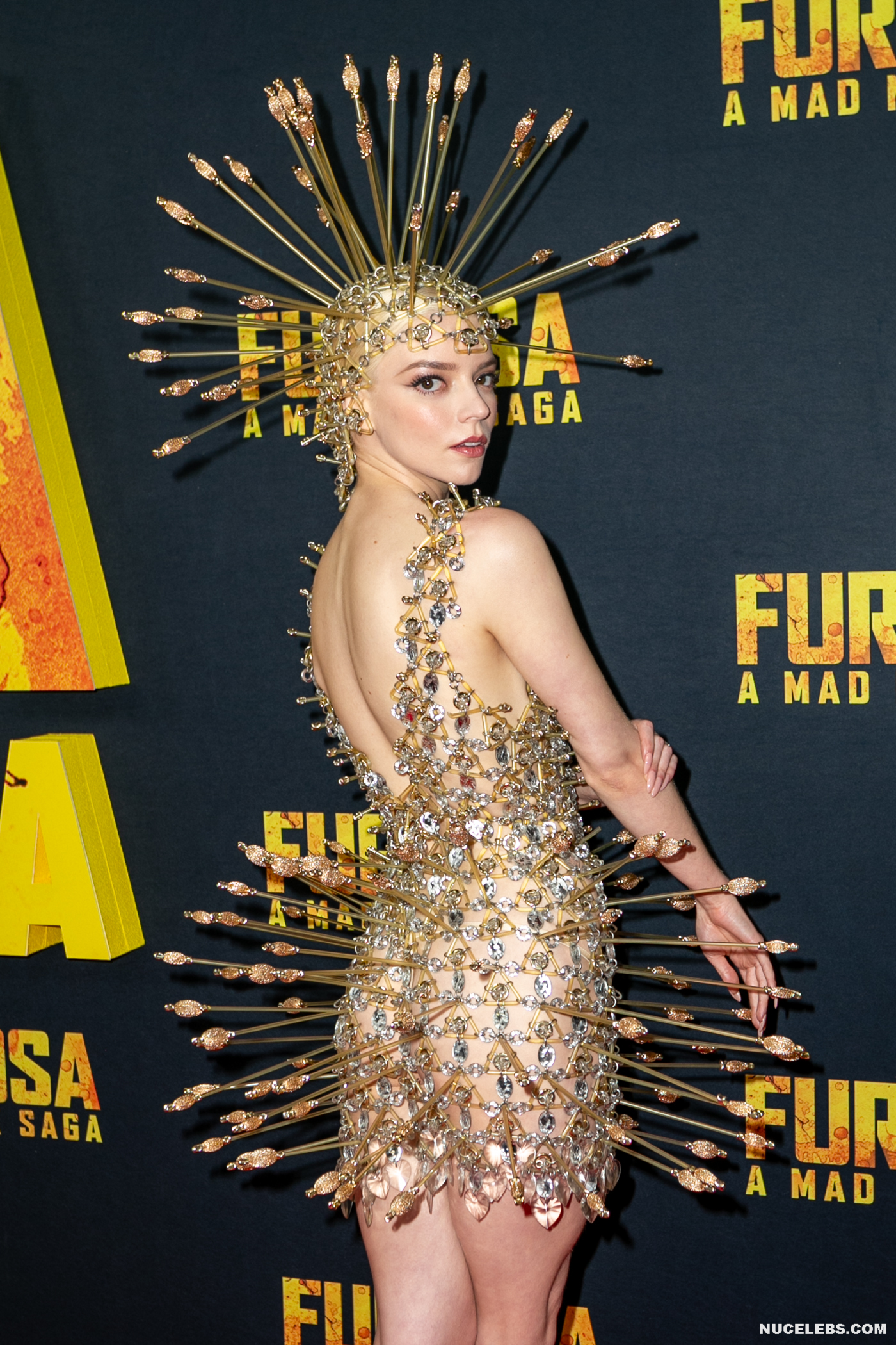 Anya Taylor-Joy flaunted her poking nipples in a white tight tank top. However, her appearance at the Furiosa premiere will make your heart beat faster! After all, despite her outfit of golden arrows, Anya Taylor-Joy seemed completely nude! So, when she turned her back, her bare butt was visible through her outfit. However, Anya Taylor-Joy’s nude tits were also visible through it. Without a doubt, this celebrity created a real sensation!