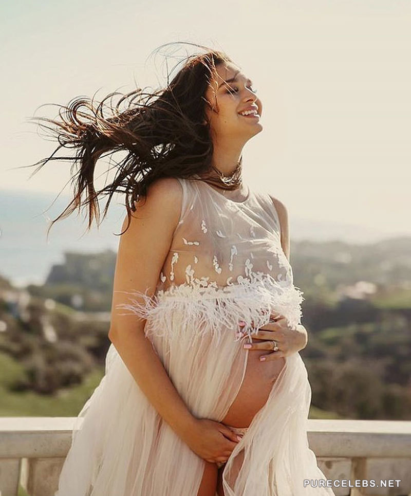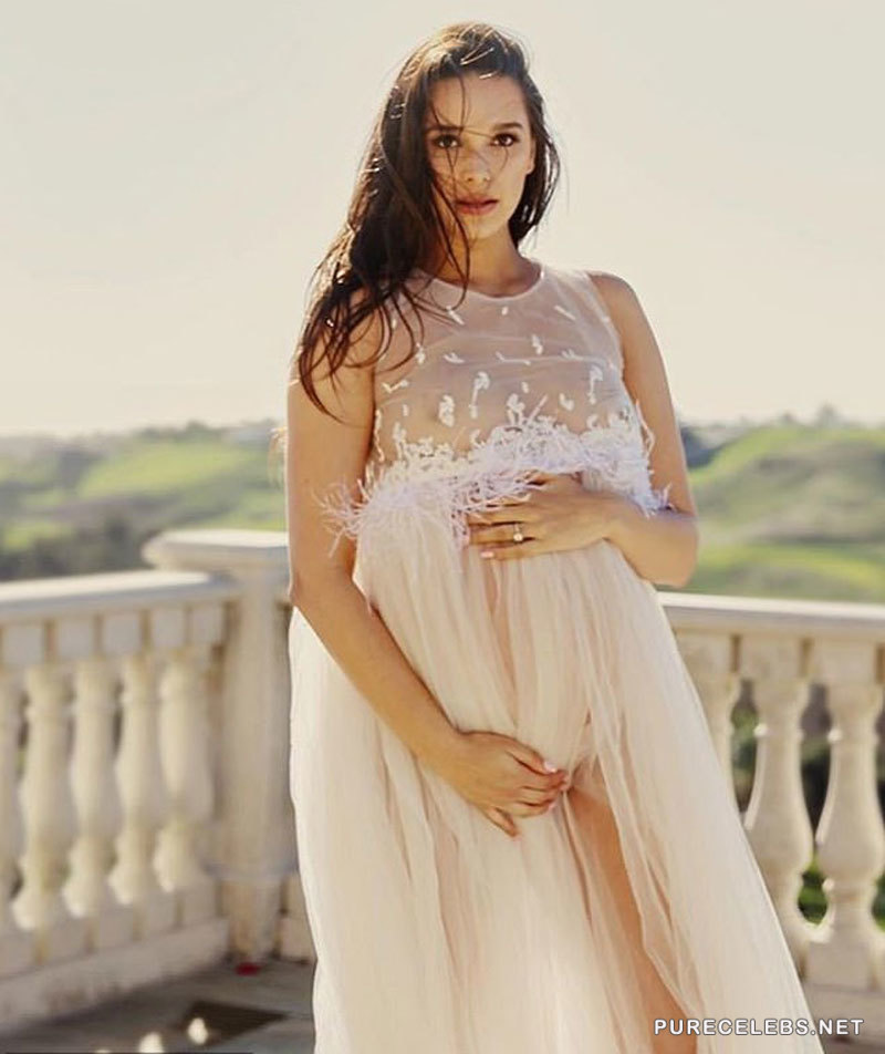 April Love Geary has a baby in her belly and she feels a lot of pride for bringing a new life into this world. She also likes the way her body looks now so she puts on a transparent outfit and she does a lot of sexy pictures with her nipples being visible through the transparent fabric, poking out because of all the excitement.