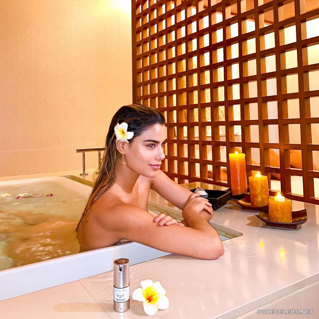Colombian actress Ariadna Gutierrez decided to pamper her fans with provocative photos. The girl was relaxing on the beach in a sexy white bikini. It is worth noting that the celebrity looked just gorgeous, posing against the backdrop of palm trees. And in order to even more impress the public, the star removed her bra and posed topless, covering her amazing boobs with her hands, and it looked very sexy and seductive!