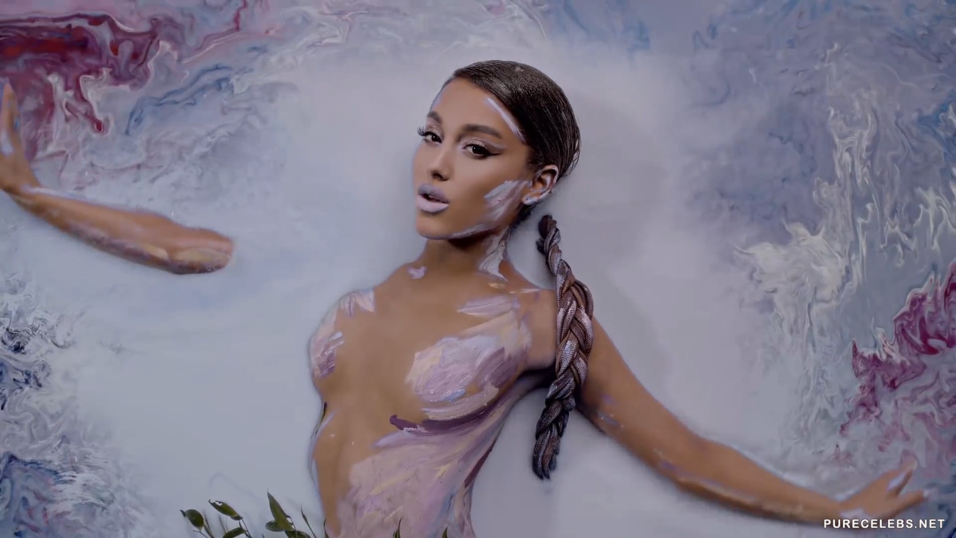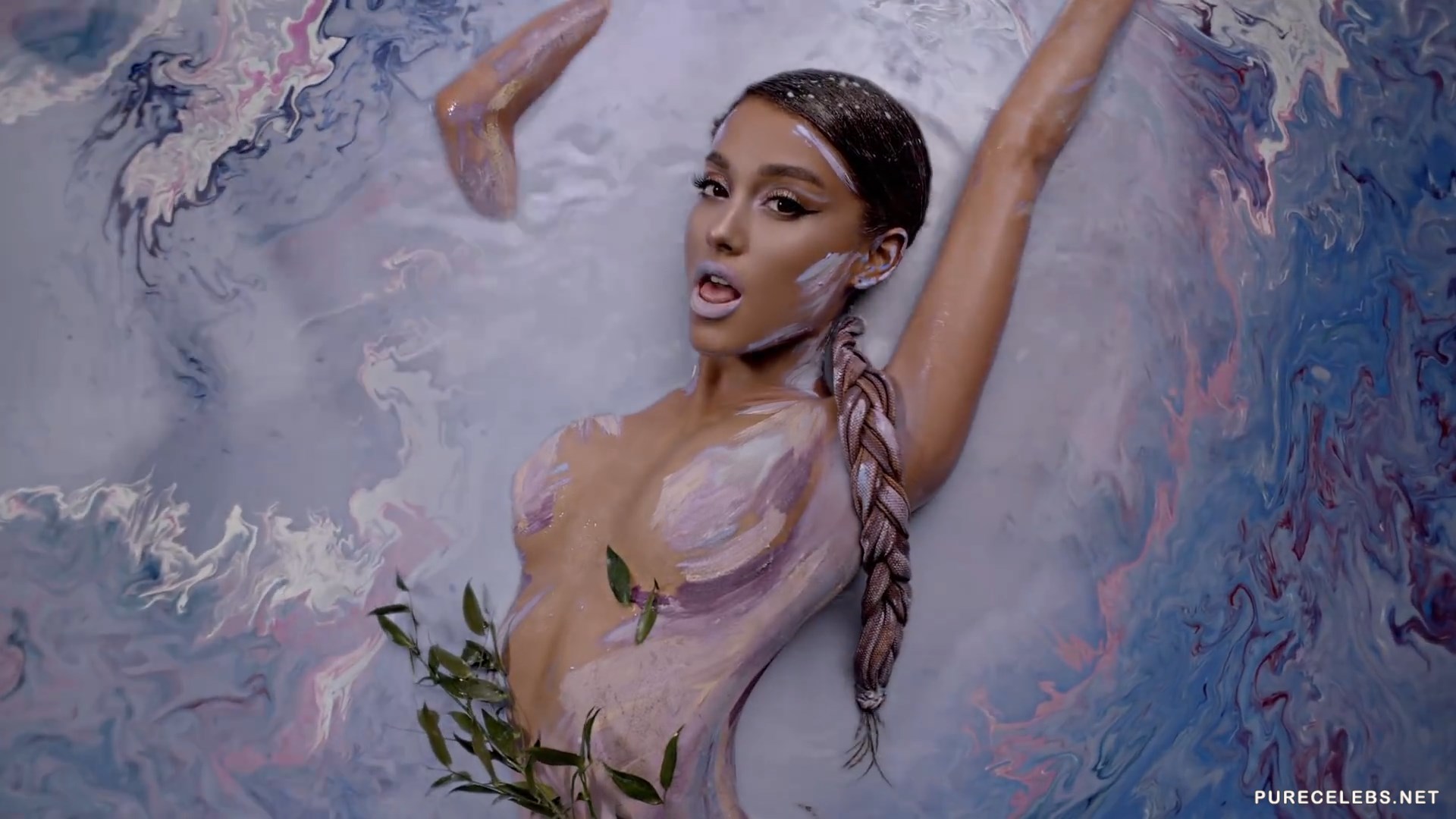 Beautiful American singer, whose family has Italian roots, known for her voice as much as for her beauty and recent engagement and fast break up that followed up, Ariana Grande has made a new video where we can see her basically naked, just strategically covered with colors, as if she had some clothes on. The video starts with her dancing and contains many sexy moment of this petite temptress.
