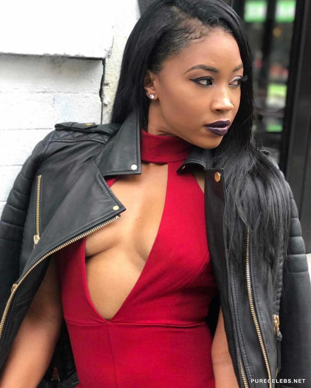 WWE athlete Ariane Andrew posed topless for a magazine recently. This ebony vixen is no stranger to the spotlight, she proudly posed in tiny white denim shorts while barely covering her nipples with her hand. Other than exposing her chocolaty brown tits she also modeled various skimpy lingerie outfits for the photographer. Her amazing muscular body encourages viewers to take a closer look at her six-pack abs and luscious thighs.