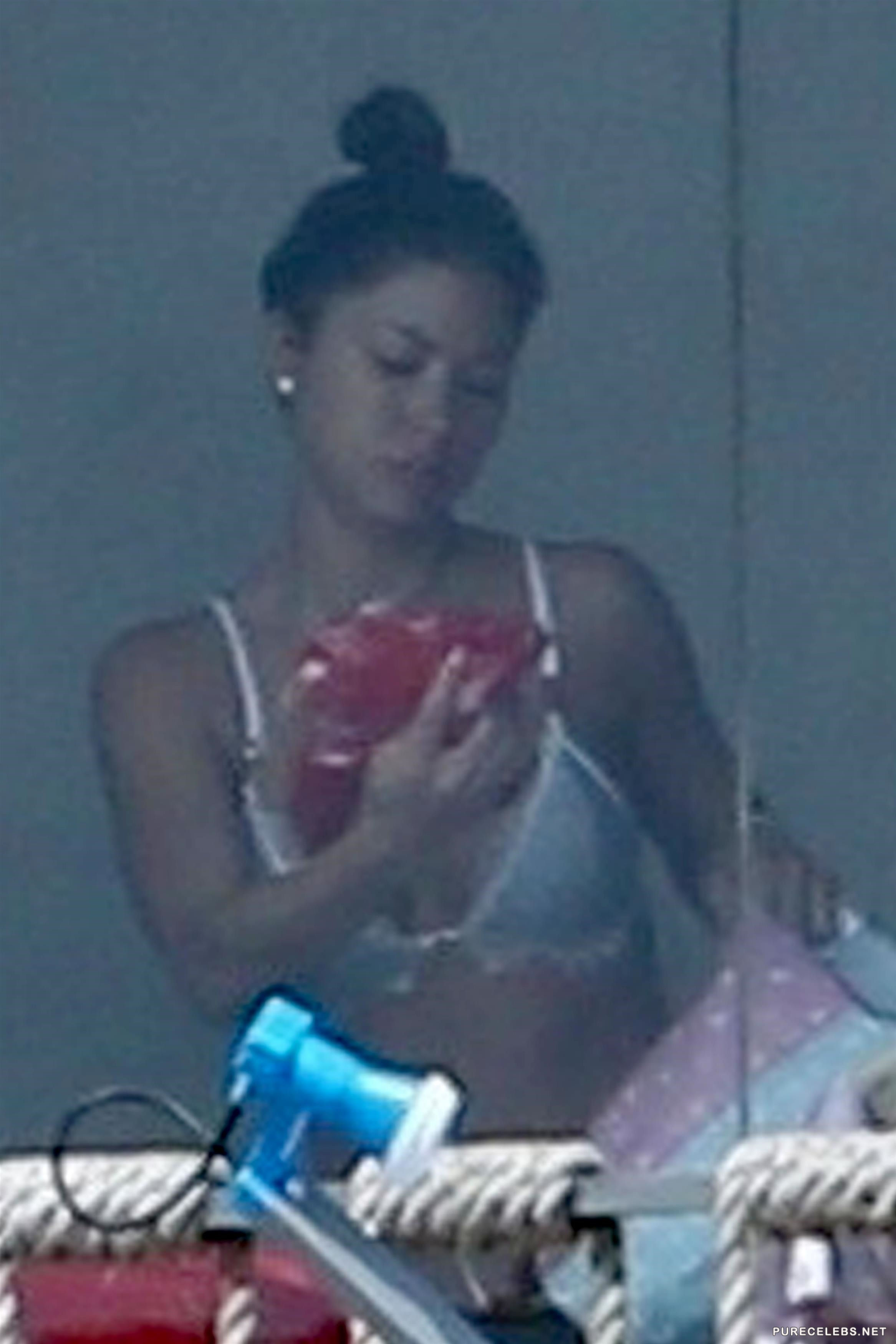 Arianny Celeste ends up topless on the beach while she is getting some sun with her female friend. She at one points decides that she needs to change her outfit and while she thinks that she is safe from curious eyes, she manages to get shot by a skilled photographer and she then shows off her perfect boobs that need a lot of caressing and sucking.