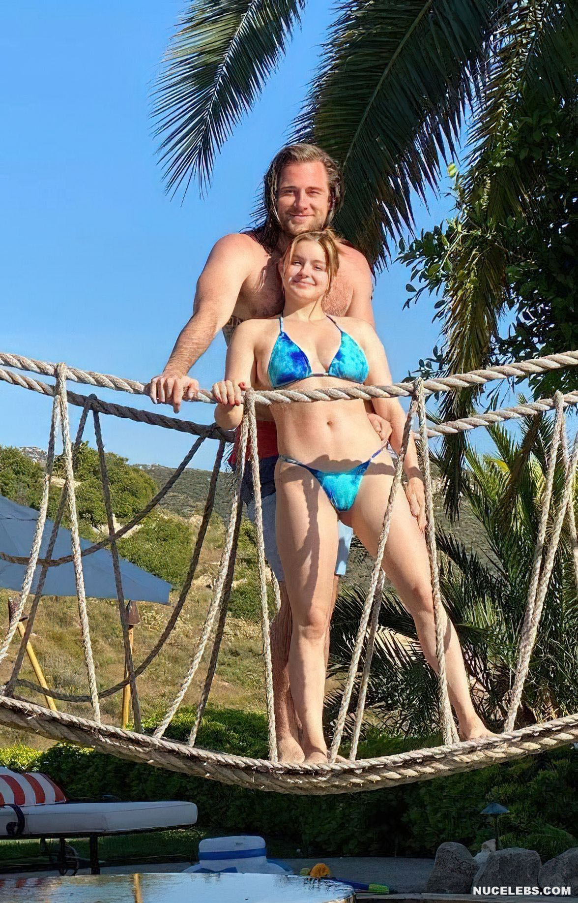 Ariel Winter will turn you on with hot sexy pics. So, recently this beauty showed off her awesome cleavage in a beige sweater with black polka dots. Oh, this red-haired beauty looked stunning at that moment, didn’t she? Also, this 24-year-old actress did not forget to show off her awesome figure in a petite blue bikini, posing in the arms of a guy.